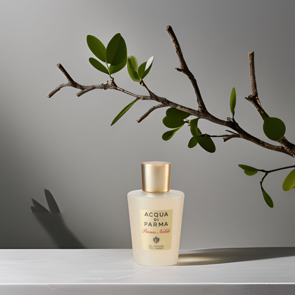 انغمس في جوهر جل الاستحمام Acqua Di Parma Peonia Nobile الرقيق والحيوي.