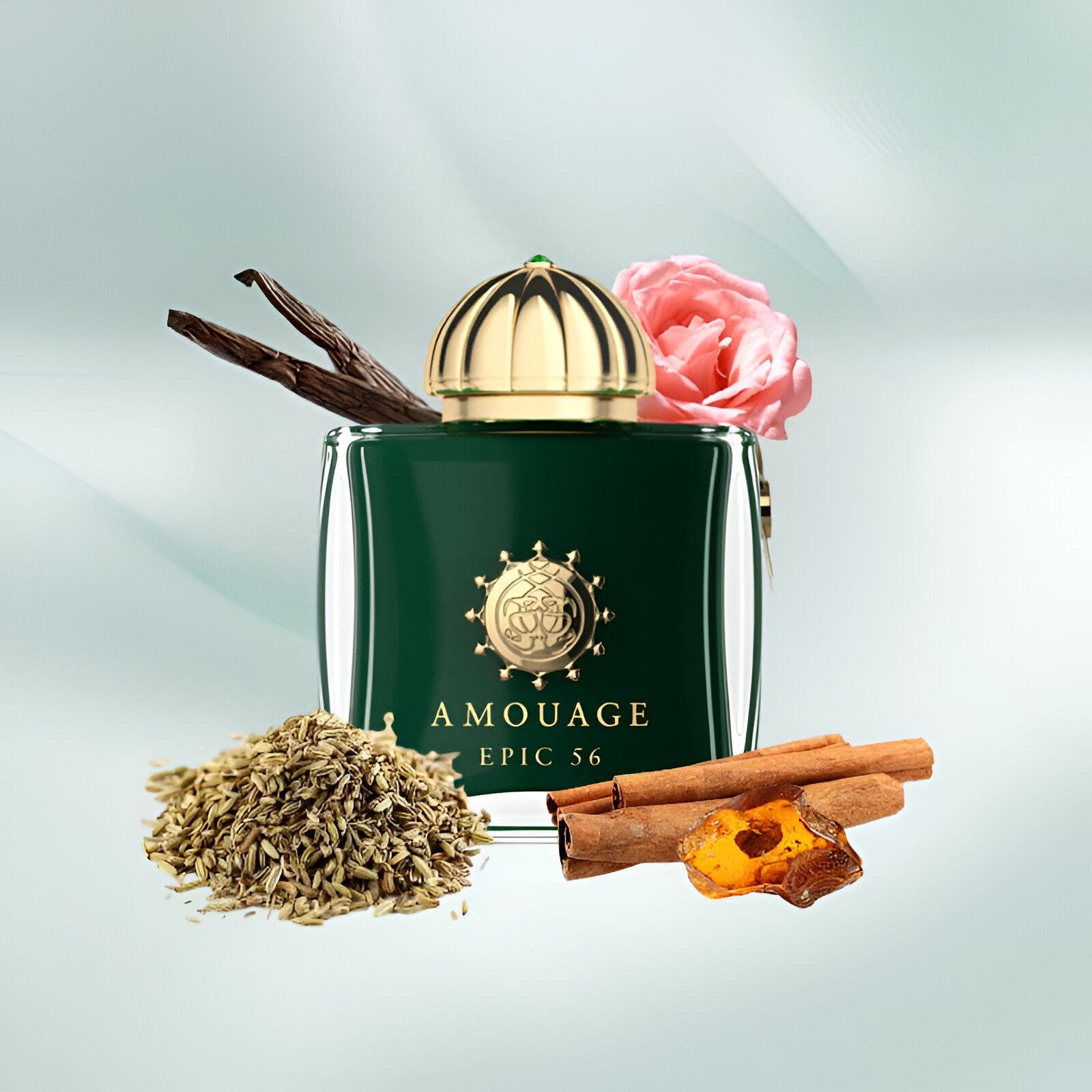 يتميز عطر Amouage Epic 56 برائحة غنية وغريبة مع قاعدة عميقة من العنبر والعود، مما يستحضر غموض طريق الحرير القديم.