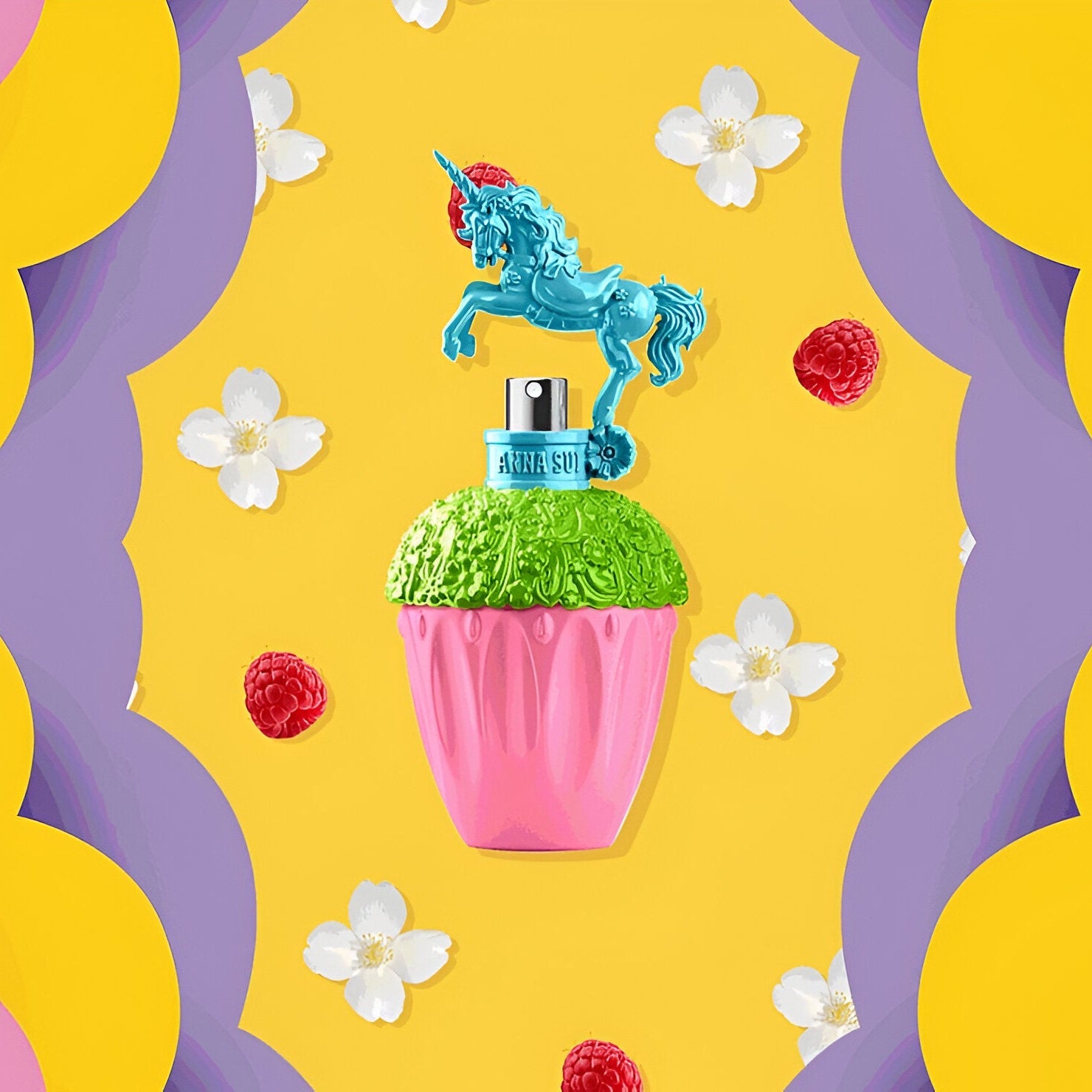 Anna Sui Fantasia Pop Surprise! Green Blue EDT smells sweet and fruity with hints of wild raspberry and cotton candy, combined with floral notes like jasmine, creating a playful and magical fragrance.