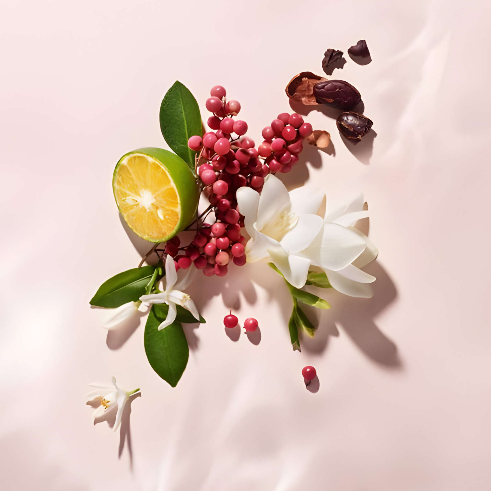 - المكونات العليا: البرتقال، الفلفل الوردي