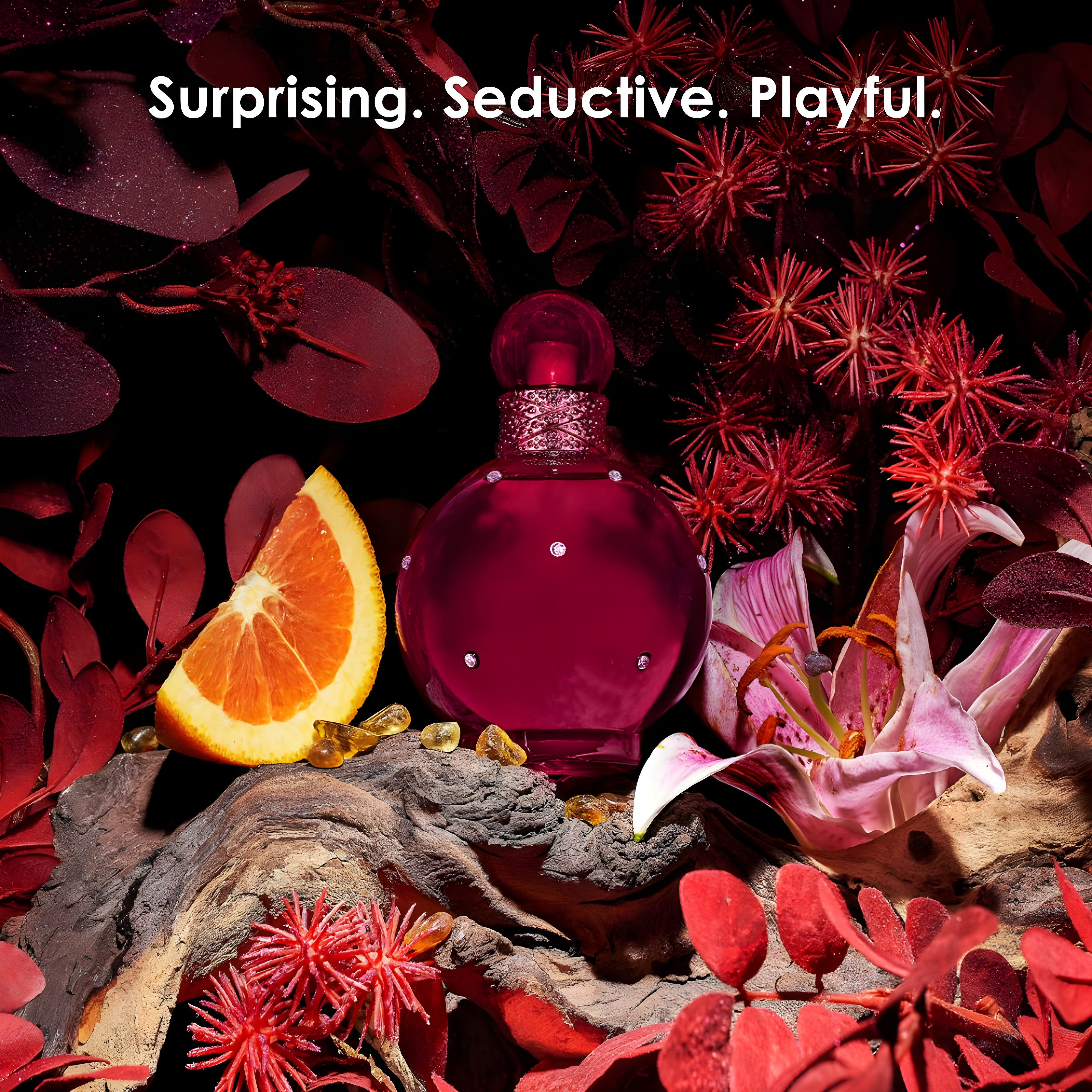 يدعوكِ عطر "خيال مخفي" لاكتشاف حديقة عطرية سرية، تستحضر مزيجًا آسرًا من الإغراء الحلو والفواكه اللذيذة. إنه العطر المثالي للتعبير عن أنوثتكِ الساحرة، مغلفةً بسحر بريتني سبيرز.