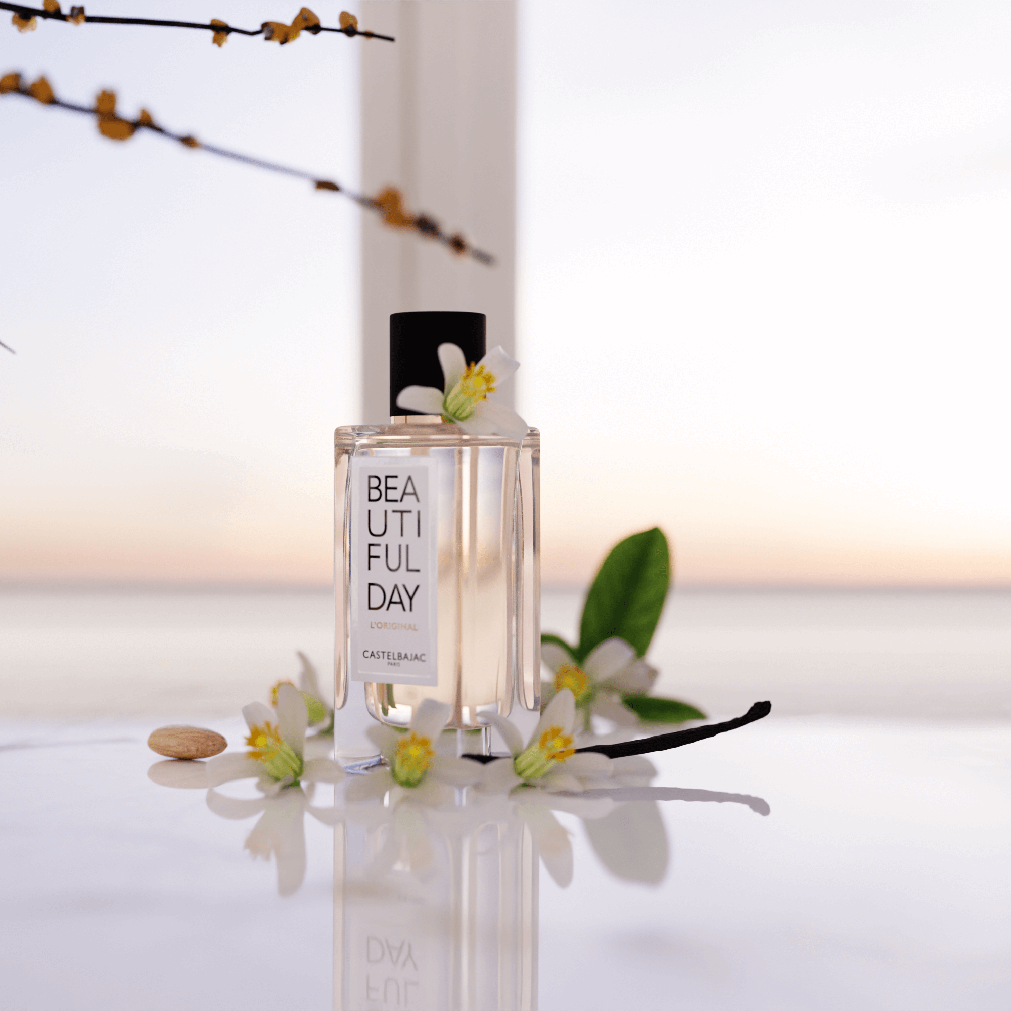 Castelbajac Beautiful Day EDP smells like a sweet, fresh floral with fruity touches that stays softly sweet and long-lasting throughout the day.