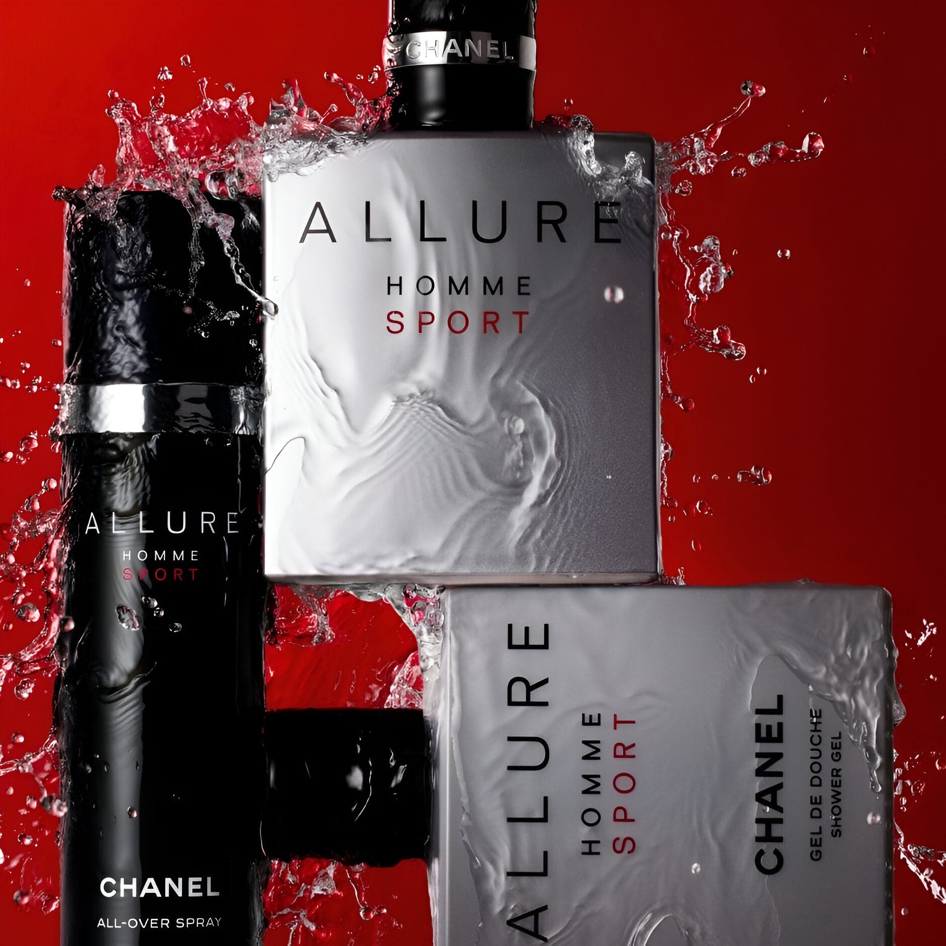 استمتع بقوة جل الاستحمام Chanel Allure Homme Sport، وهو مزيج مصمم لتنشيط الجسم وتجديده.