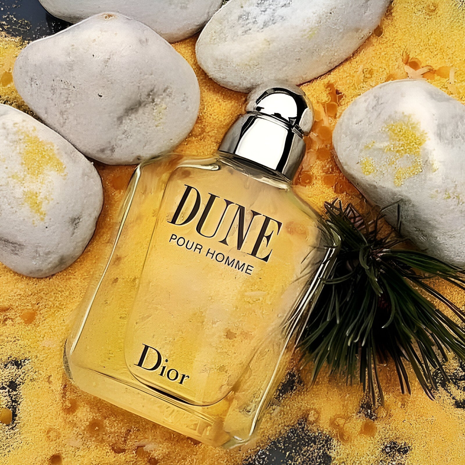 يتمتع عطر Christian Dior Dune Pour Homme EDT برائحة تشبه نسيم المحيط المنعش الممزوج بخشب الصندل الترابي وتوت العرعر الفاكهي، ليجسد جوهر ملاذ هادئ على شاطئ البحر.