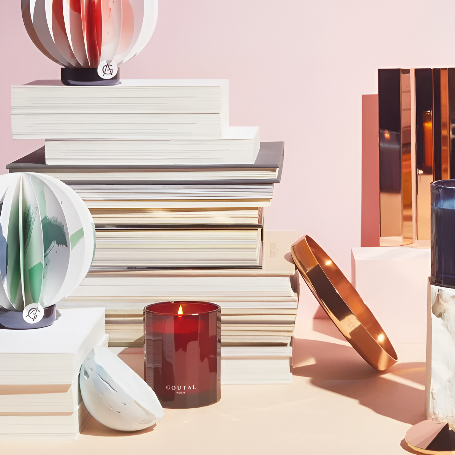 استمتعي برائحة شمعة Goutal الشرقية الهادئة في حامل زجاجي أنيق.