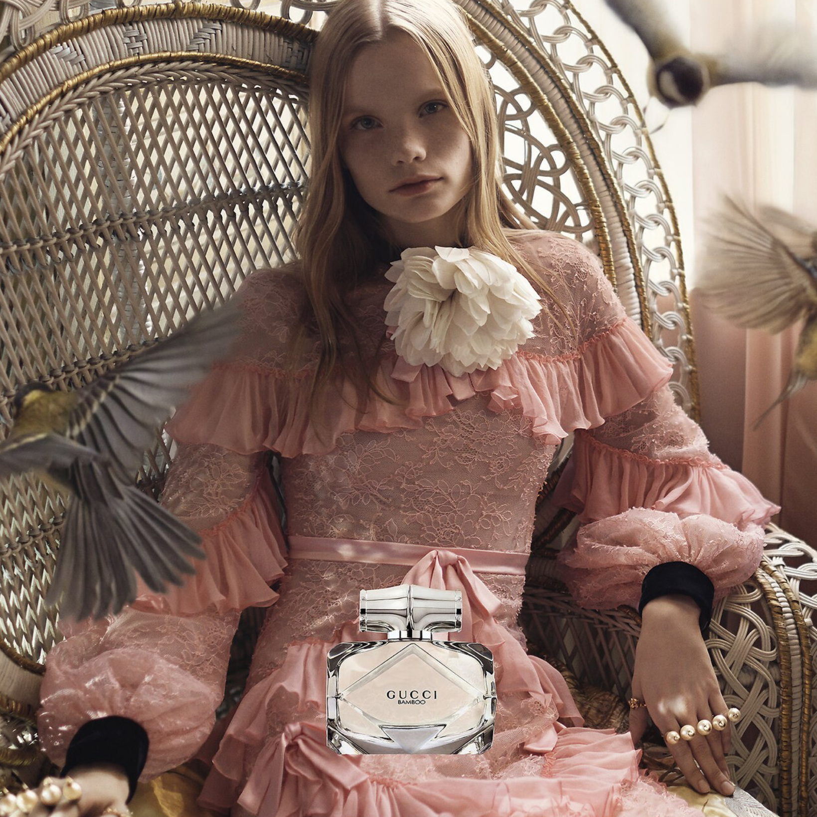 يتميز عطر Gucci Bamboo EDP برائحة فاخرة مع نفحات عليا زهرية من الإيلنغ إيلنغ وزهر البرتقال، ومتوازنة مع قاعدة من خشب الصندل الدافئ.