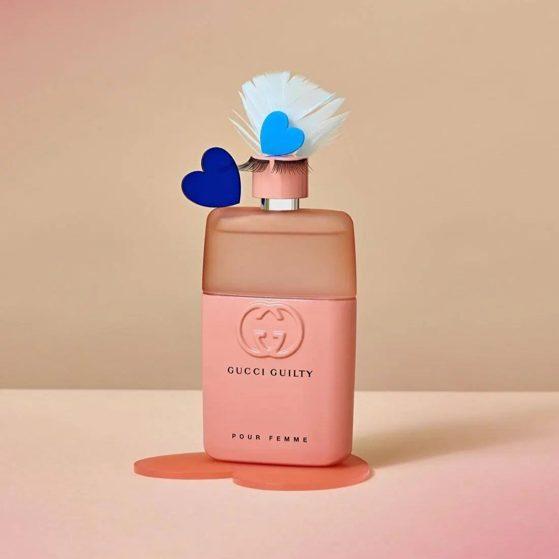 Gucci Guilty Love Edition Pour Femme EDP smells floral and romantic, featuring sweet lilac, earthy patchouli, warm musk, and rich amber, creating a charming and sophisticated scent.