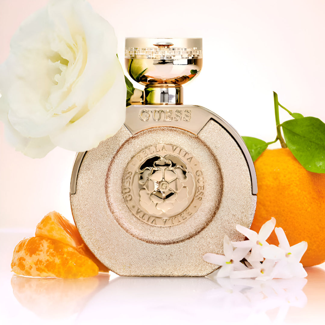 Guess Bella Vita Paradiso EDP smells like a lovely mix of fresh fruits and elegant flowers, with warm notes of musk and amber that give it a seductive finish.
