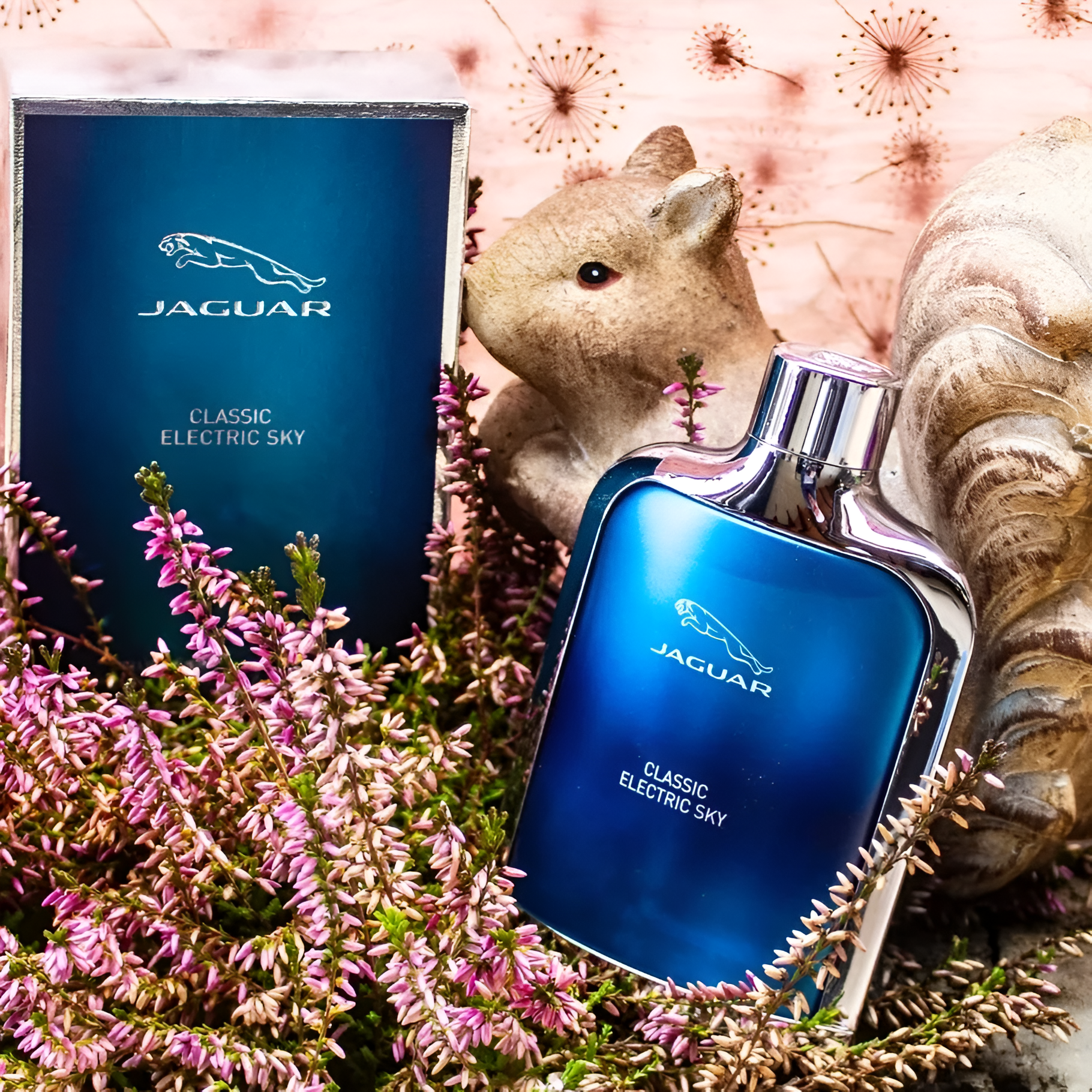 أطلق العنان للجوهر الكهربائي لعطر Jaguar Classic Electric Sky EDT.