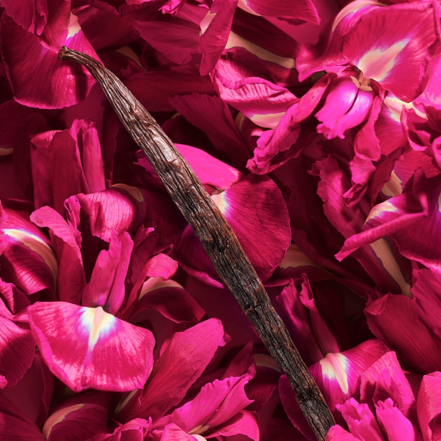 استمتع برائحة توت العليق الشهي وزهرة السوسن الغنية والناعمة، لمزيجٍ حلوٍ وراقي. تُضفي الفانيليا الكريمية في القاعدة دفئًا فاخرًا ومريحًا، ما يجعل العطر جذابًا لا يُقاوم.