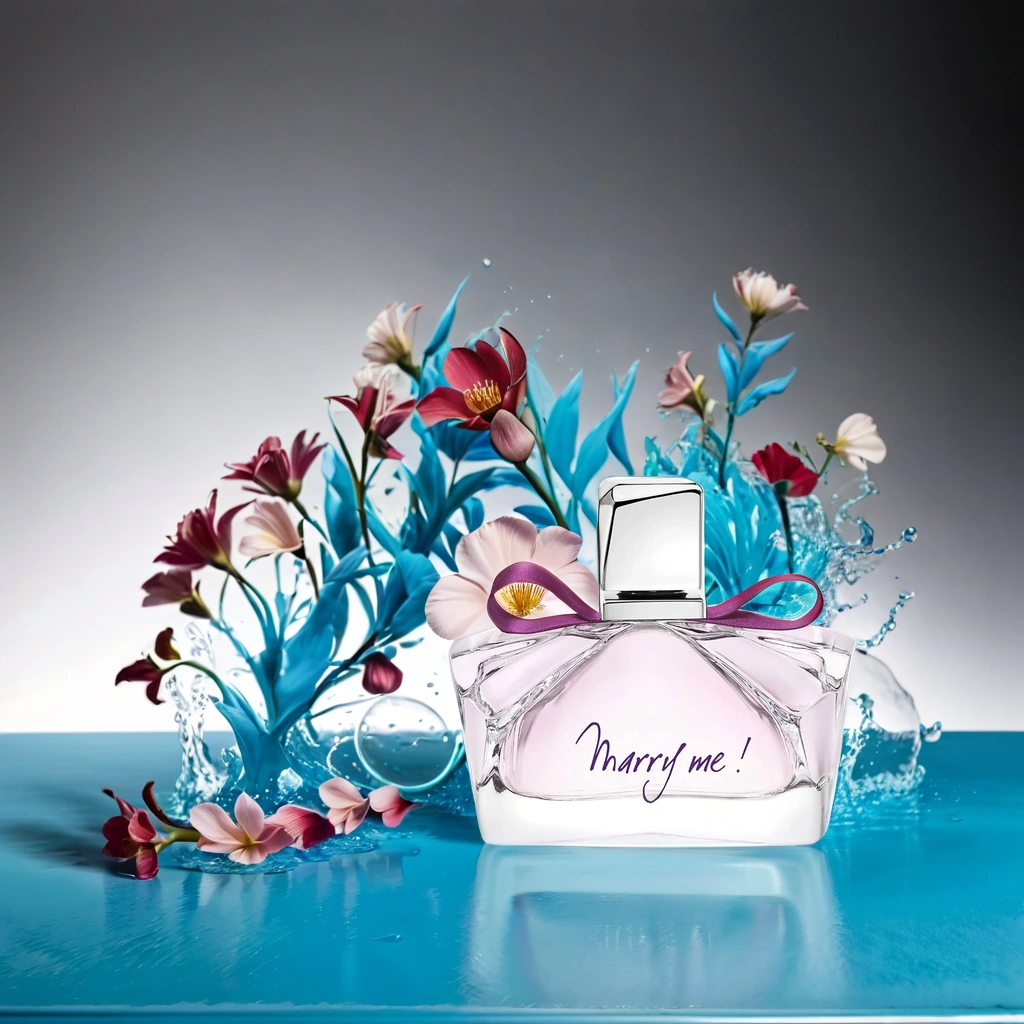 يفتتح هذا العطر الساحر بنفحات فاكهية متألقة من البرتقال المر والفريزيا والخوخ، ممهدًا الطريق لقلب آسر. يجسد جوهر عطر "تزوجني!" فرحة الحب وإثارة شغفه بباقته الساحرة. استمتعي بالسحر والرقي اللذين لا تتقنهما إلا لانفين مع كل رشة.