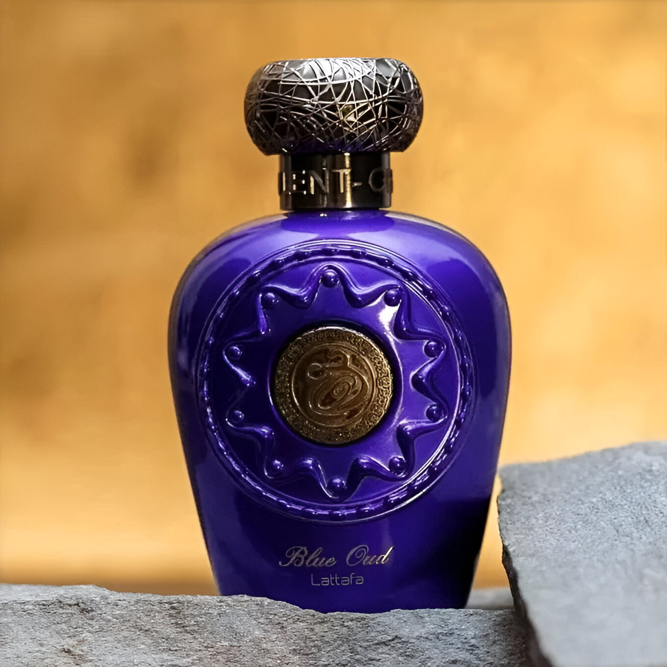 استمتعي بجوهر العطر الفاخر من Blue Oud من Lattafa Perfumes، وهو عطر من العنبر والخشب للنساء والرجال.