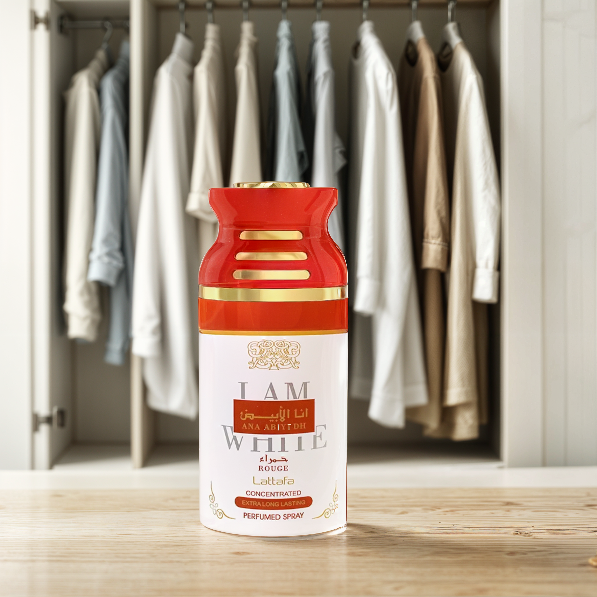 ادخل إلى عالم حيث تلتقي الأناقة بالسحر مع مزيل العرق المركز Lattafa I Am White Rouge.