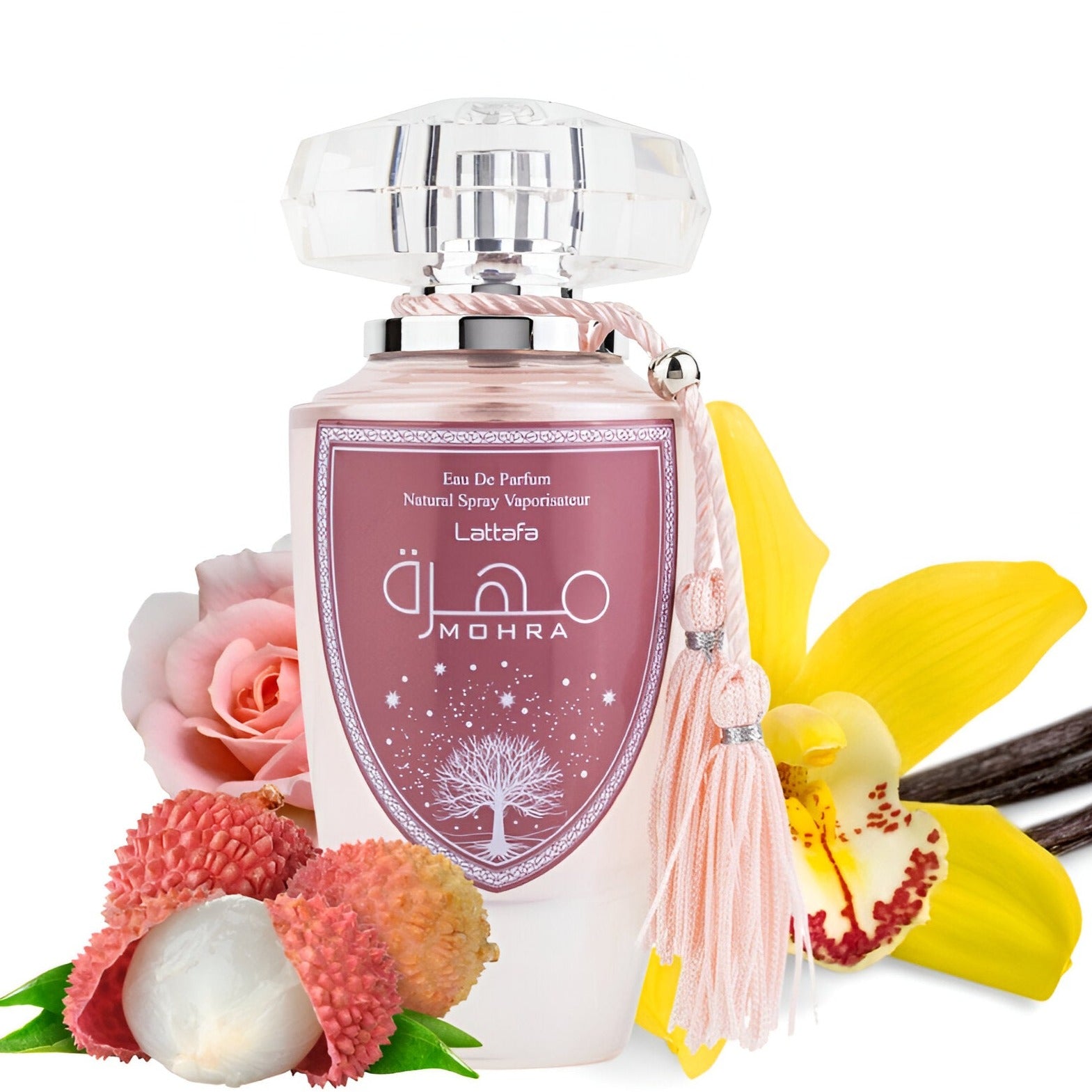 يتميز عطر Lattafa Mohra Silky Rose EDP برائحة مزيج آسر من الورد العطري والفلفل الوردي الحار، مع مكونات حسية من الياسمين والفانيليا والمسك الأبيض.