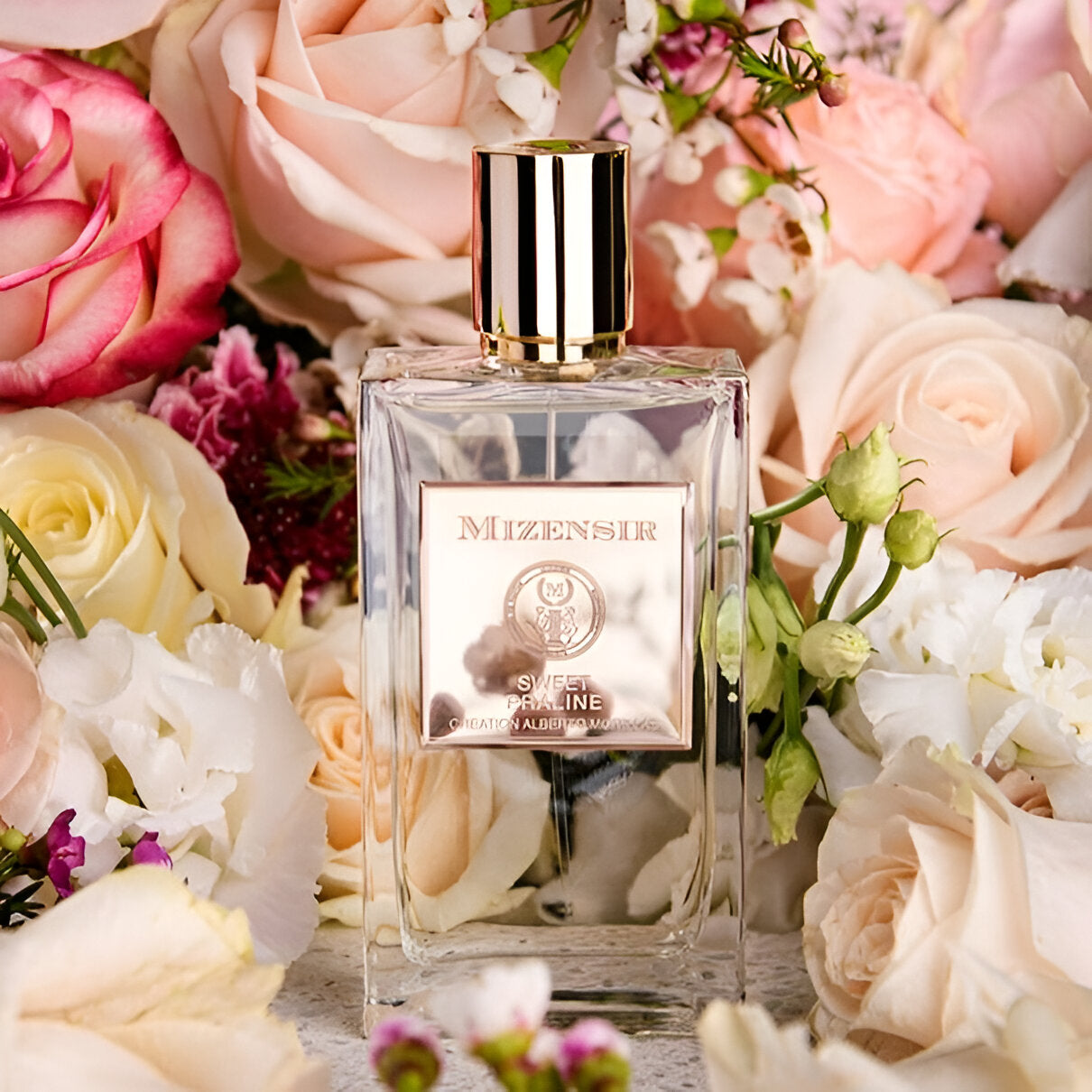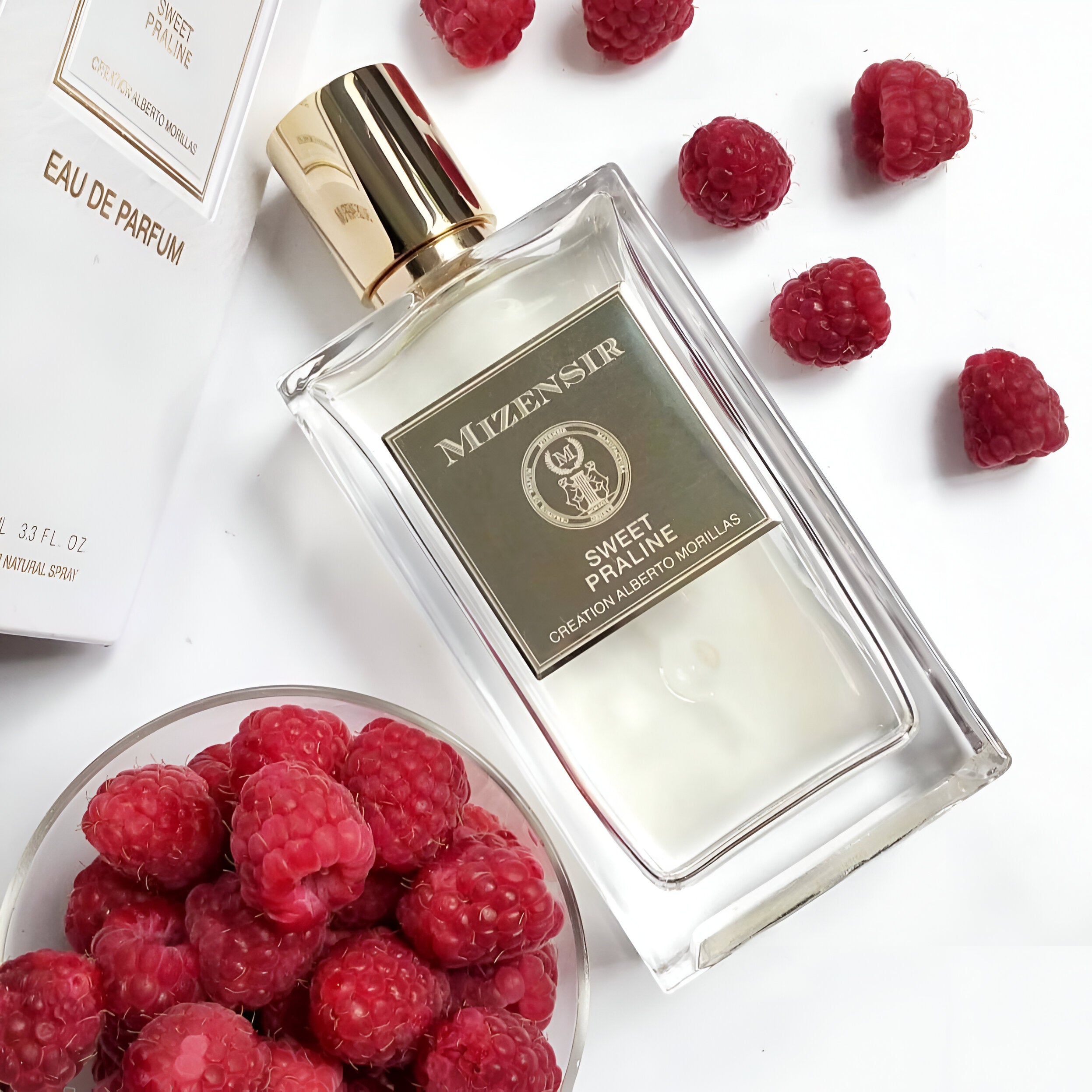 انطلق في رحلة عبر العطر مع Mizensir Sweet Praline EDP، التحفة الفنية من Alberto Morillas.