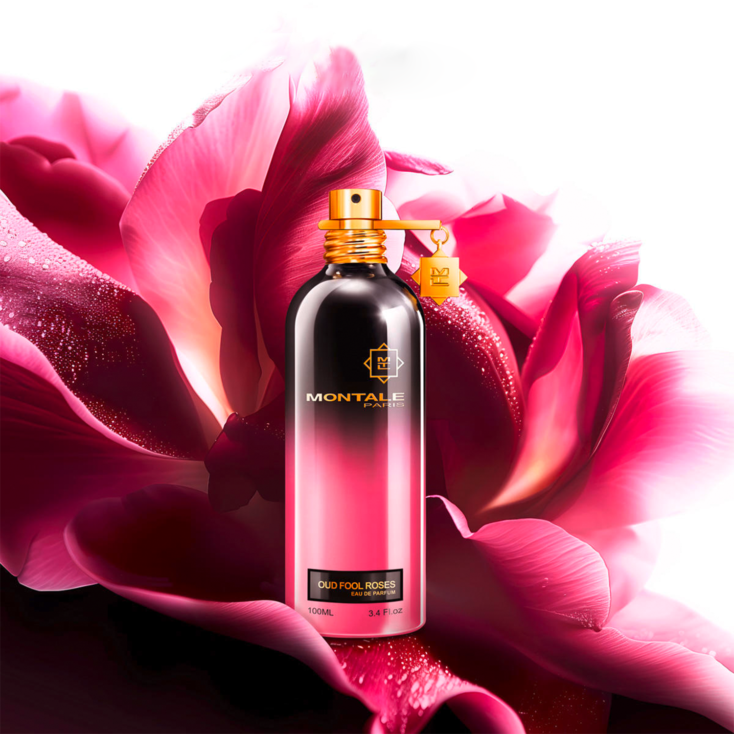 Montale Oud Fool Roses EDP smells like a rich and enchanting blend of fresh tangerine, luxurious roses, warm oud, and soft cashmere wood, creating a captivating and mysterious scent for both men and women.