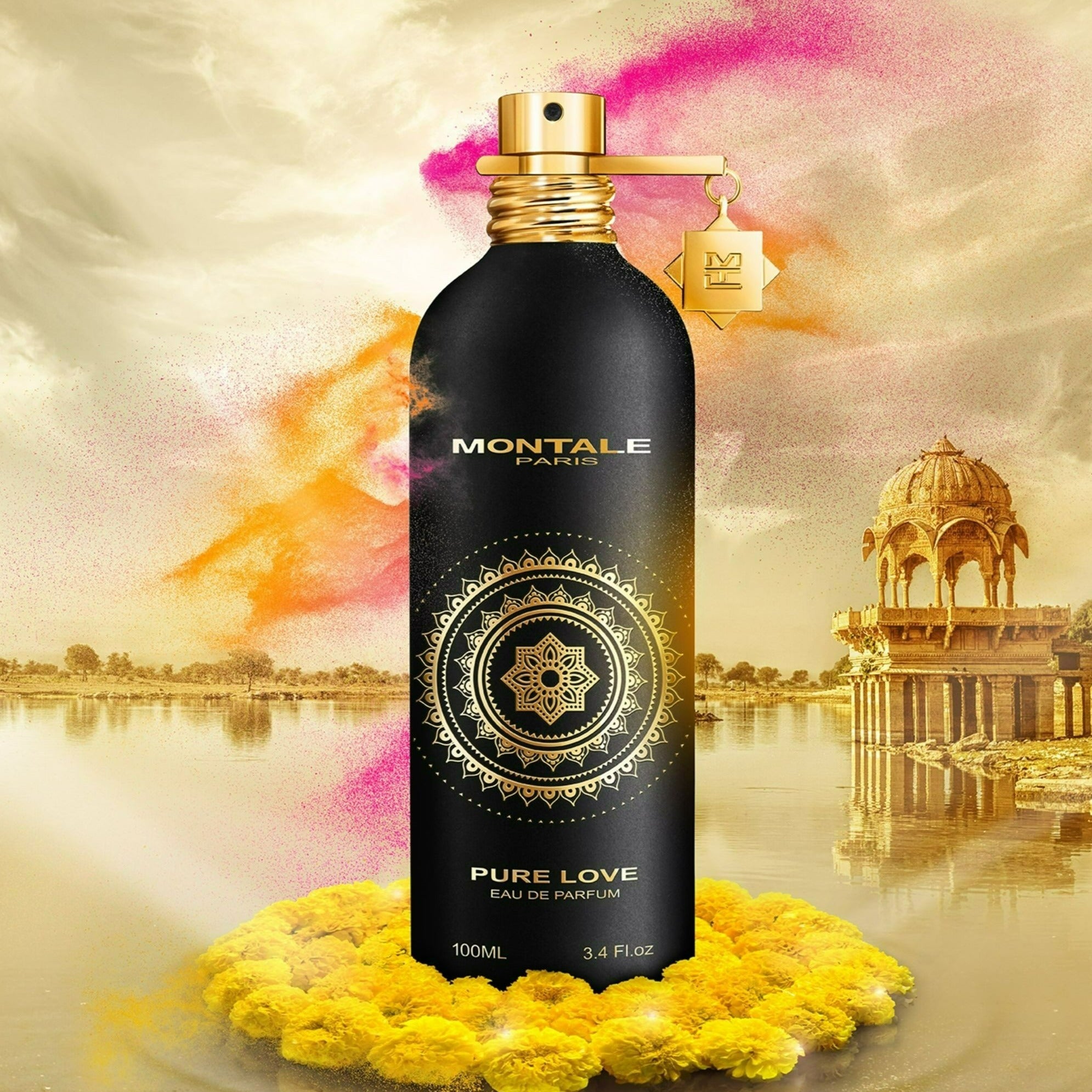 جرب عطر Montale Pure Love Eau de Parfum: عطر للجنسين، خشبي، حار، وجلدي مع روائح الورد وخشب الصندل ونجيل الهند.