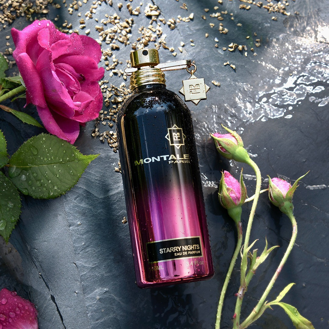 استمتعي بمزيج ساحر من التفاح والورد والياسمين والعنبر مع عطر Montale Starry Nights EDP للحصول على رائحة مسائية ساحرة تدوم طويلاً.