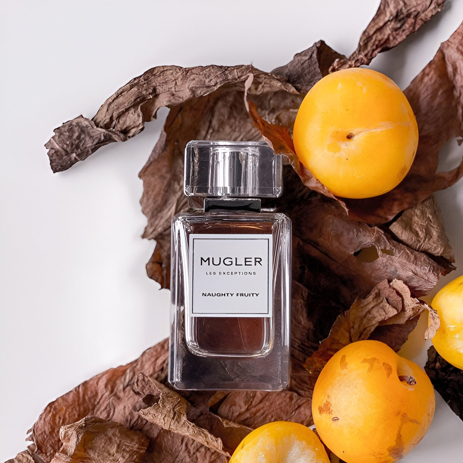 استمتعي بعطر Naughty Fruity Eau de Parfum الجريء والجذاب من Mugler، والذي يتميز برائحة البرقوق الميرابيل والمكونات الفاكهية المنعشة وتصميم آرت ديكو.