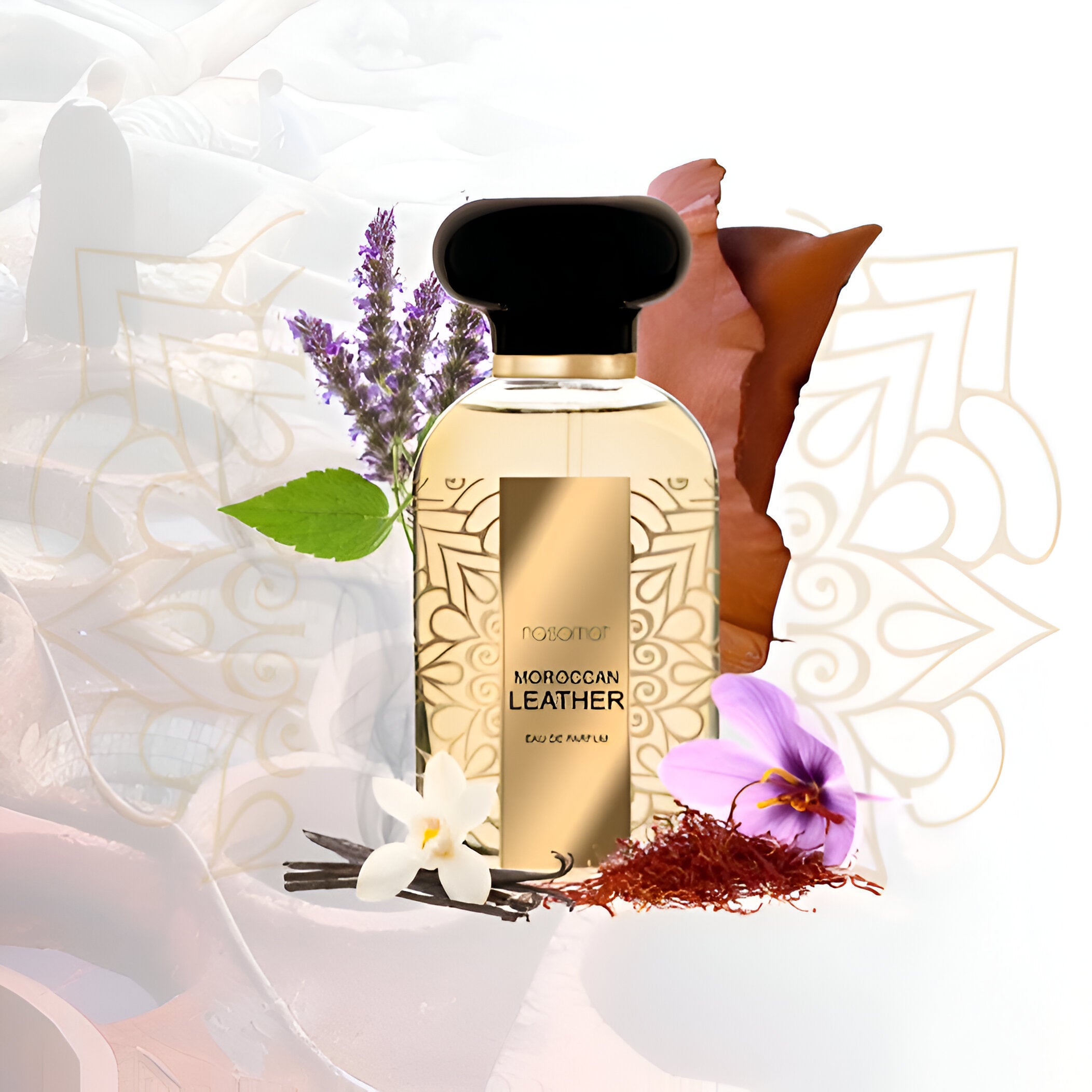انغمس في رفاهية Nasamat Moroccan Leather Gold EDP، حيث تلتقي التقاليد بالرقي.