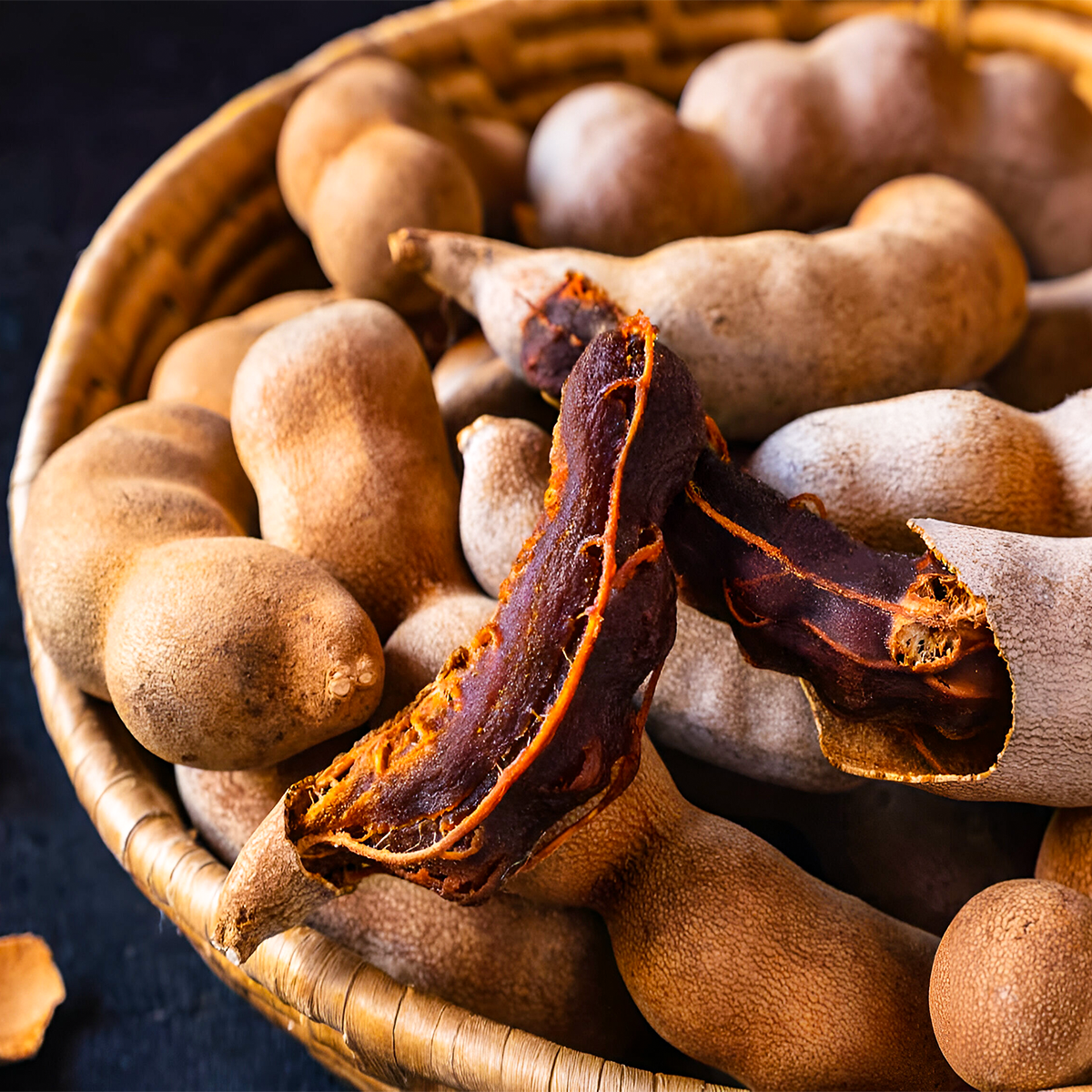 - مكونات عليا من التوت البري والفلفل الوردي والتمر الهندي