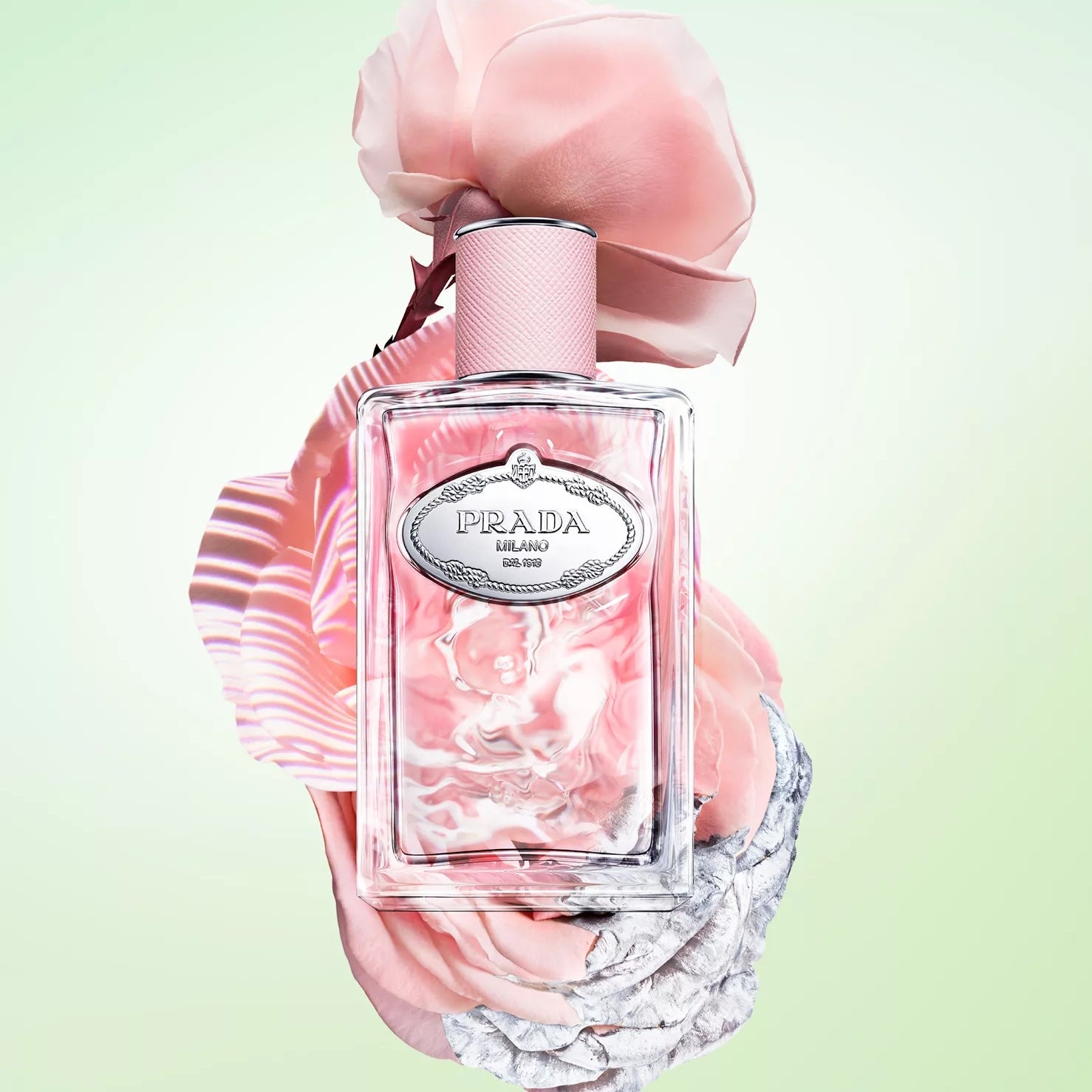 استمتعي بالتناقض الفاخر الذي يقدمه عطر Prada Les Infusions De Rose Eau De Parfum، وهو عطر يستحضر جوهر الورود المتفتحة الخالدة.