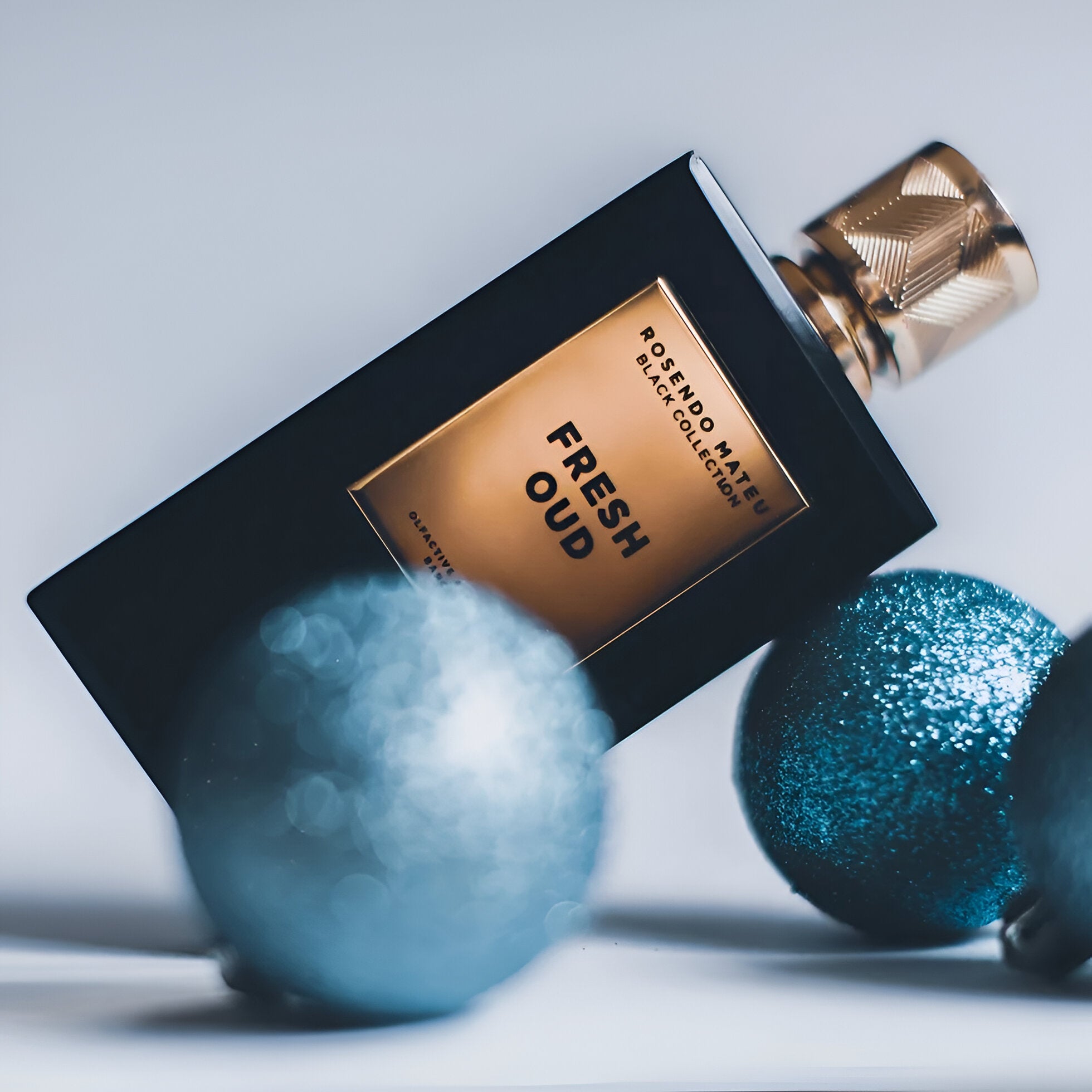 يقدم عطر Rosendo Mateu Black Collection Fresh Oud Parfum رحلة عطرية زهرية-حيوانية متطورة مع نفحات العود الغنية.