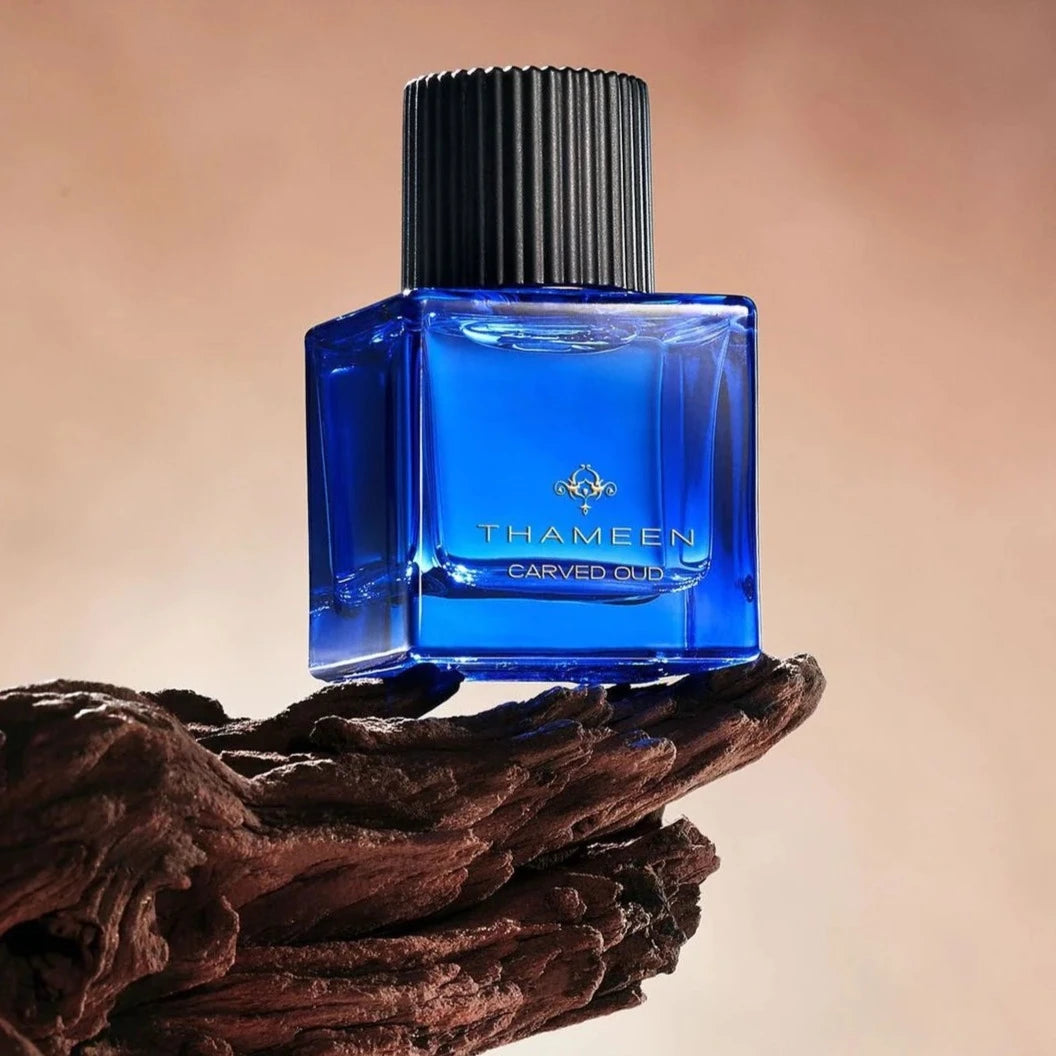 انطلق في رحلة حسية مع لوشن الجسم الفاخر برائحة العود المنحوت من مجموعة Thameen Treasure Collection.