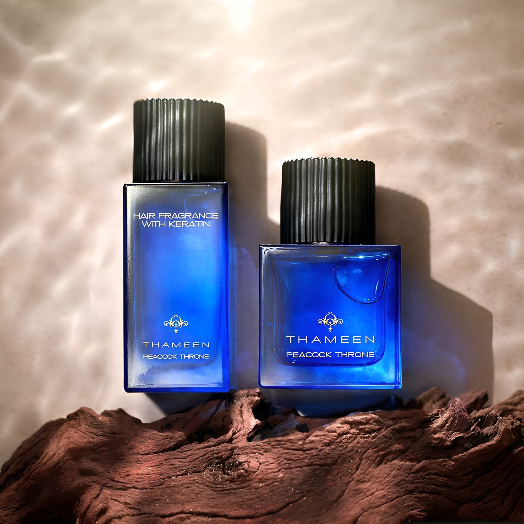 انغمس حواسك في الروعة الملكية لعطر الشعر Thameen Peacock Throne.
