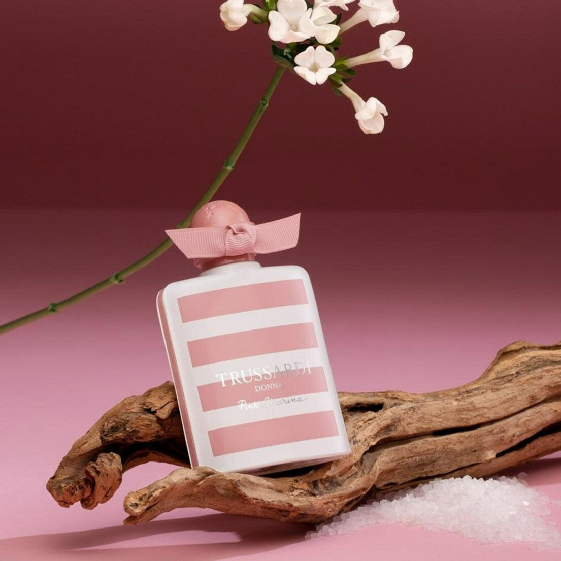 استمتعي بحرية البحر مع عطر Trussardi Donna Pink Marina EDT، الذي يتميز برائحة الجريب فروت الوردي المنعش والأزهار الرومانسية، من تصميم ناتالي لورسون.