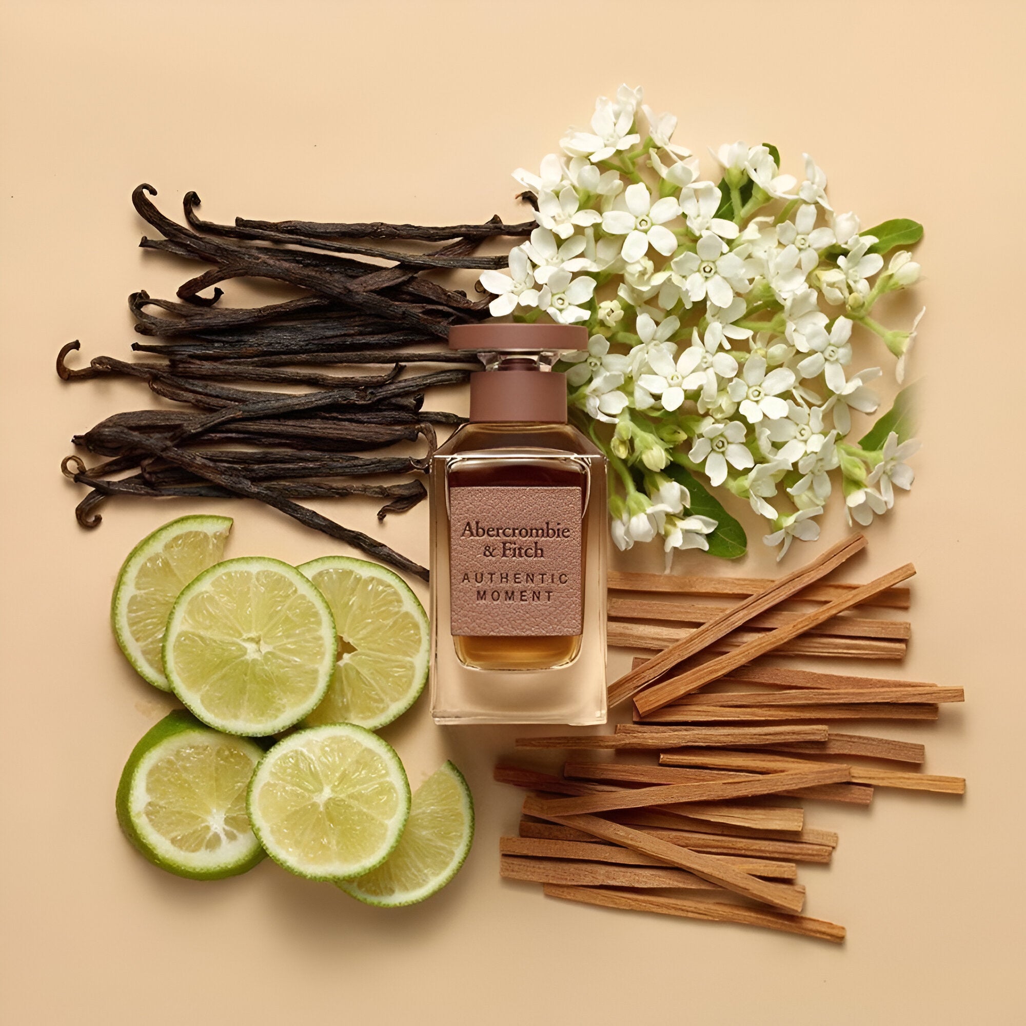 Abercrombie & Fitch Authentic Moment EDT for Men has a fresh and vibrant scent, featuring notes of citrus, crisp apple, and warm woods, creating a clean and uplifting fragrance perfect for everyday wear.