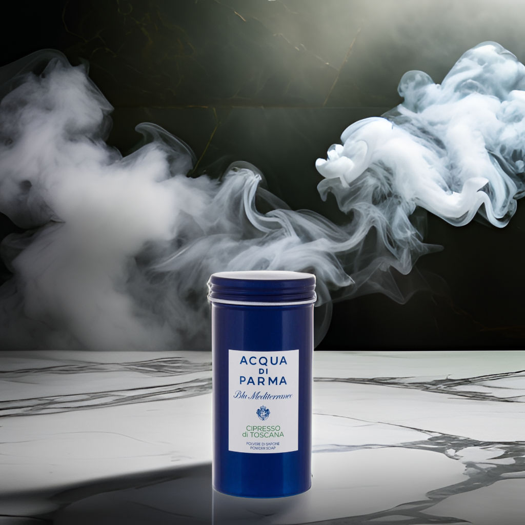 Immerse yourself in the lush Tuscan landscape with Acqua Di Parma's Blu Mediterraneo Cipresso Di Toscana Powder Soap.