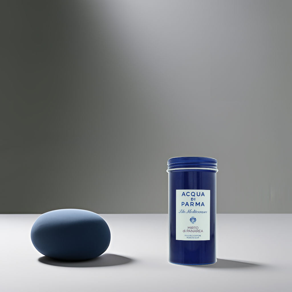 Transform your daily ritual with the luxurious Acqua Di Parma Blu Mediterraneo Mirto Di Panarea Powder Soap.