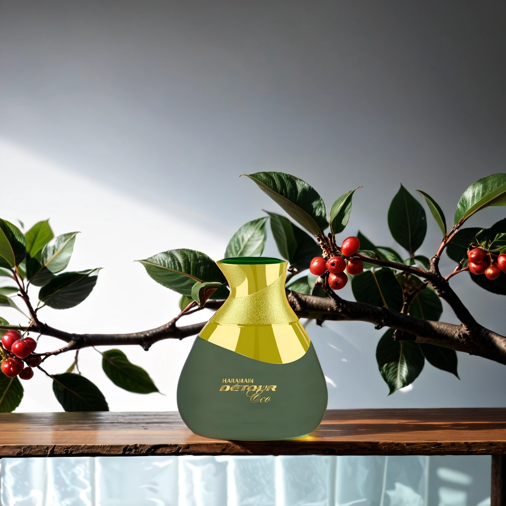 Discover Al Haramain Detour Eco: a luxurious, eco-conscious fragrance inspired by PDM Haltane, blending sophisticated Eastern notes.