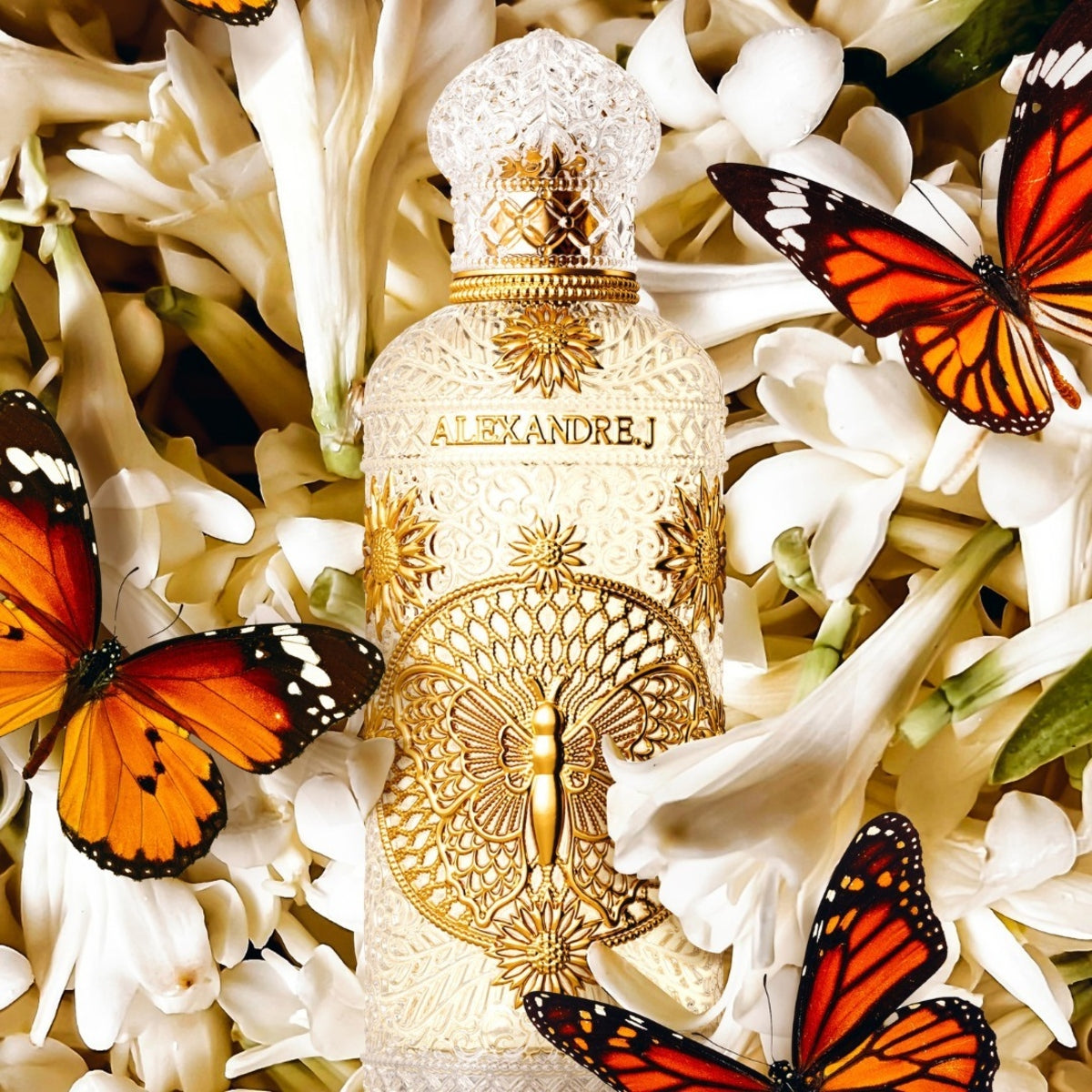 Experience the timeless elegance of the Alexandre J. Art Nouveau Collection Butterfly Eau de Parfum, a unisex floral fragrance that captivates the senses.