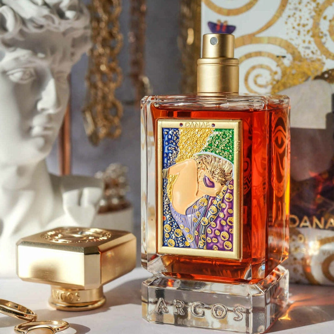 Experience Argos Danae EDP, a luxurious, woody aromatic fragrance inspired by Klimt and Greek/Roman mythology, for both women and men.