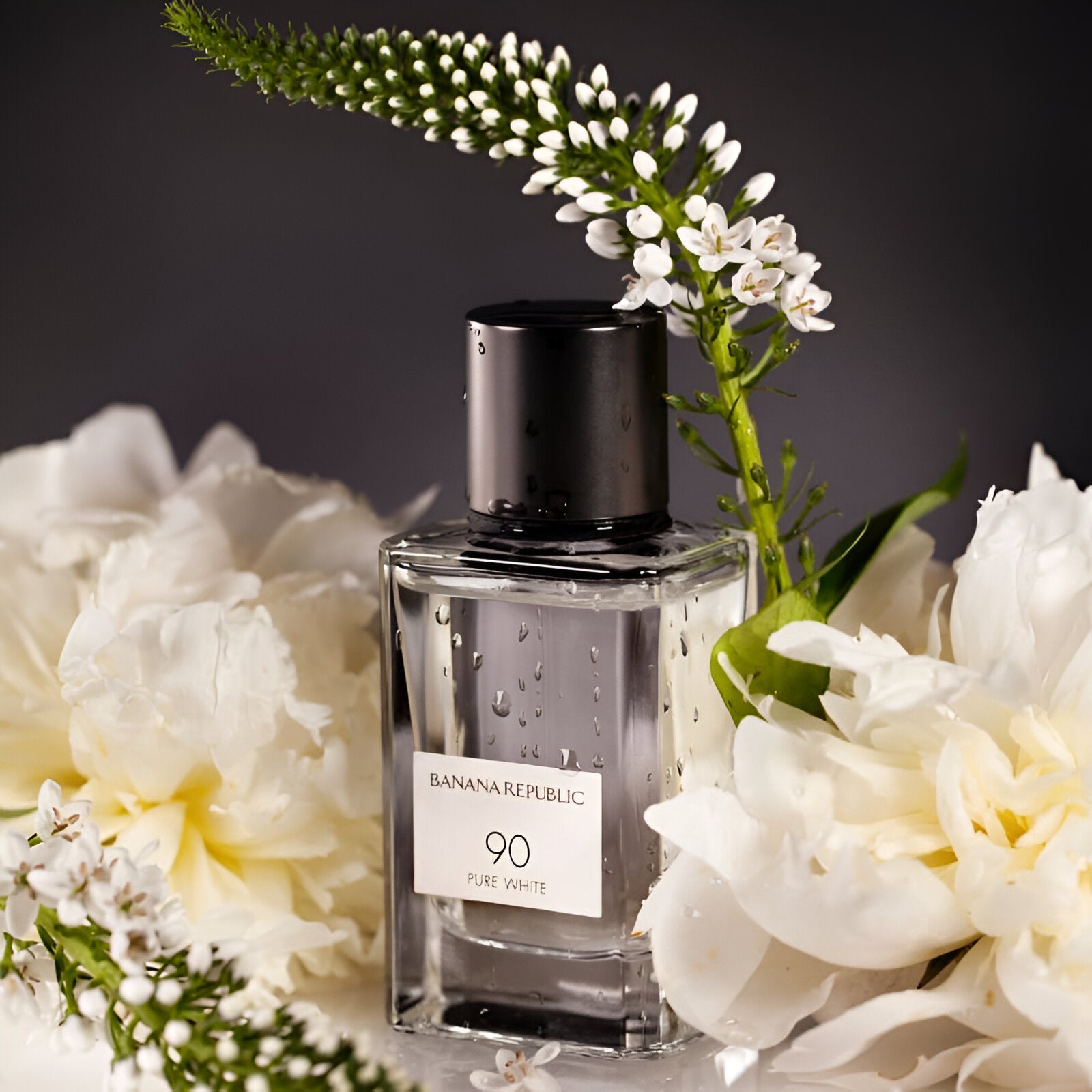 Banana Republic 90 Pure White is a refreshing unisex fragrance with green tea, jasmine, and vetiver, perfect for warm days.