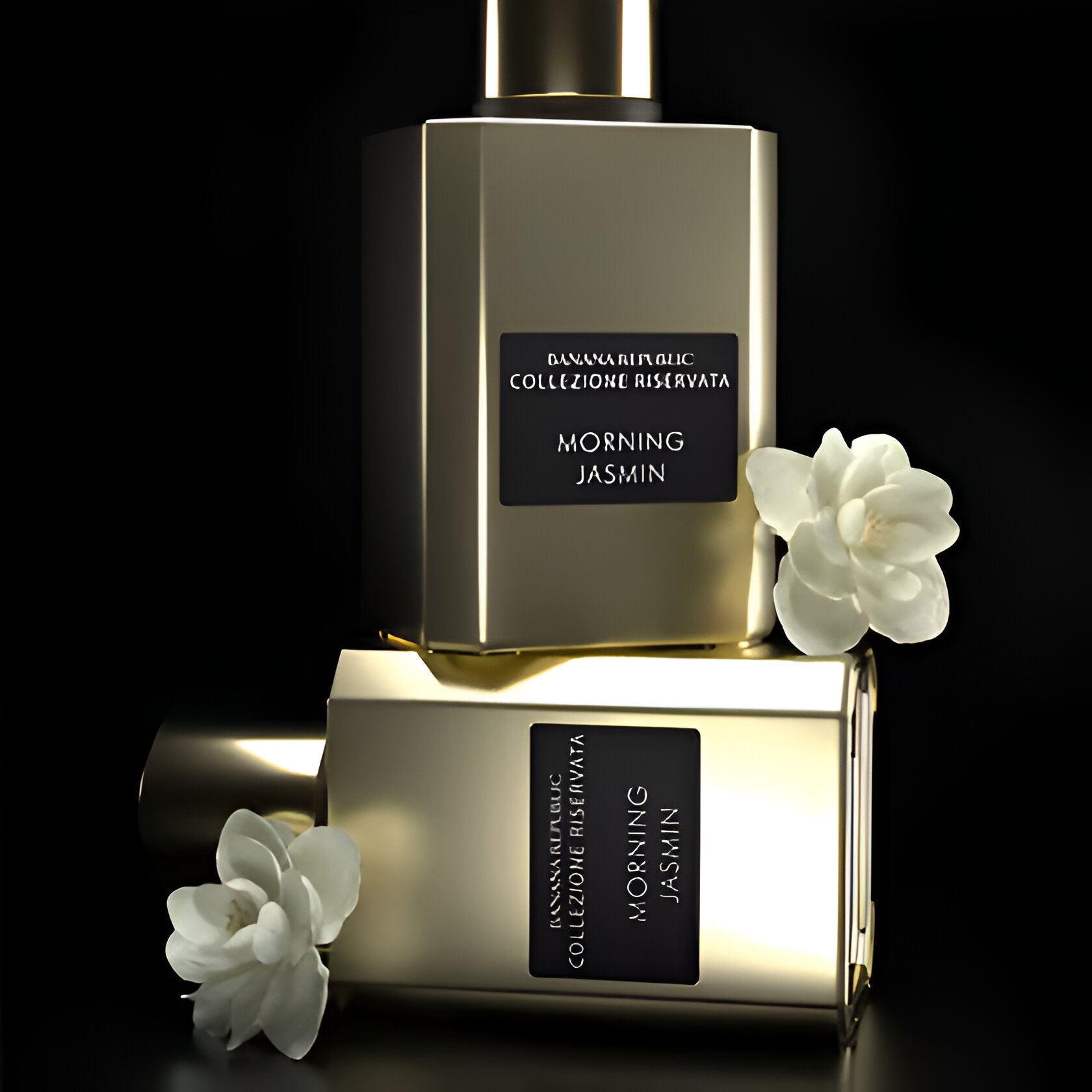 Banana Republic Collezione Riservata Morning Jasmin Extrait De Parfum smells like a delightful blend of fresh jasmine and rose, enriched with creamy sandalwood and earthy notes, evoking the charm of a beautiful morning.