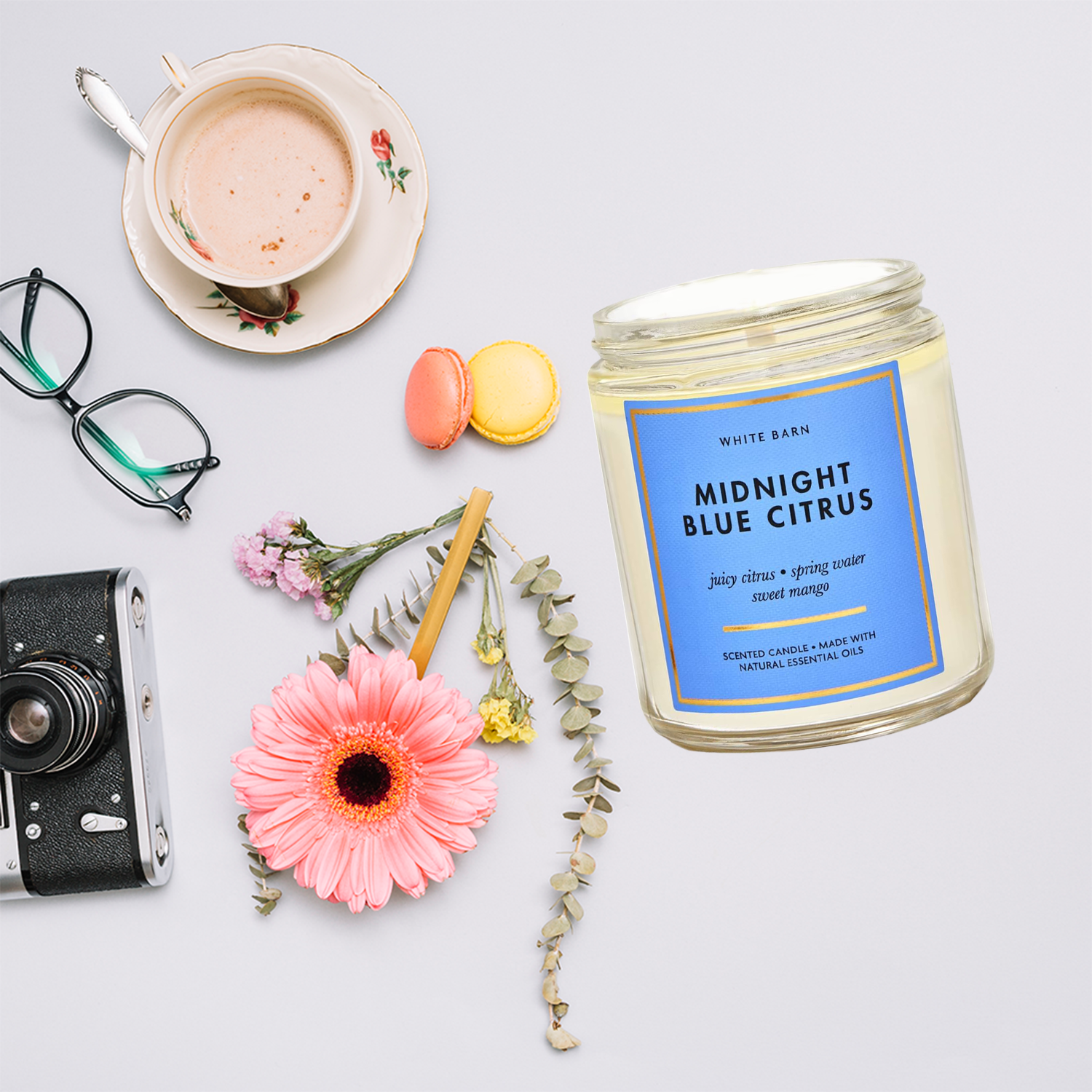 Experience a refreshing summer night with the Midnight Blue Citrus Candle, featuring juicy citrus and sweet mango aromas.