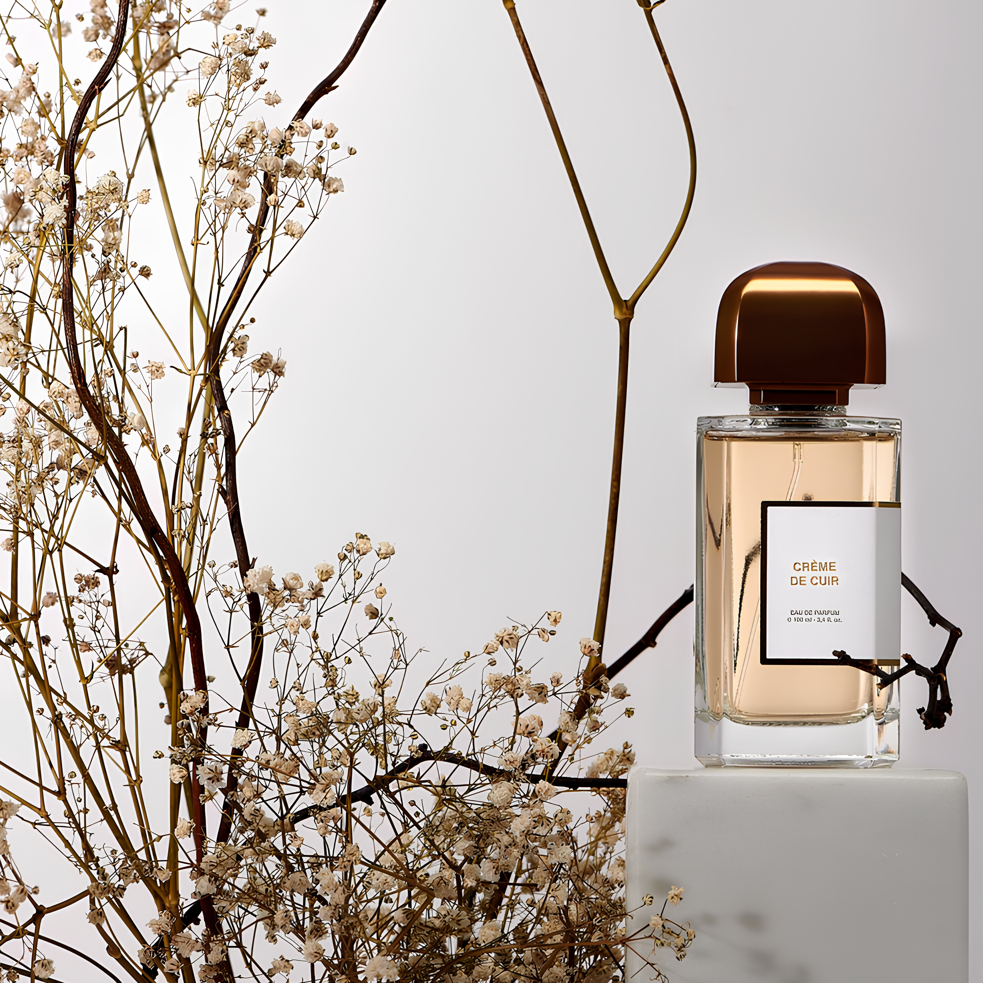 Experience BDK Parfums Creme De Cuir's soft suede scent, inspired by Rothko, with leather-like vegan notes for sensual evening wear.