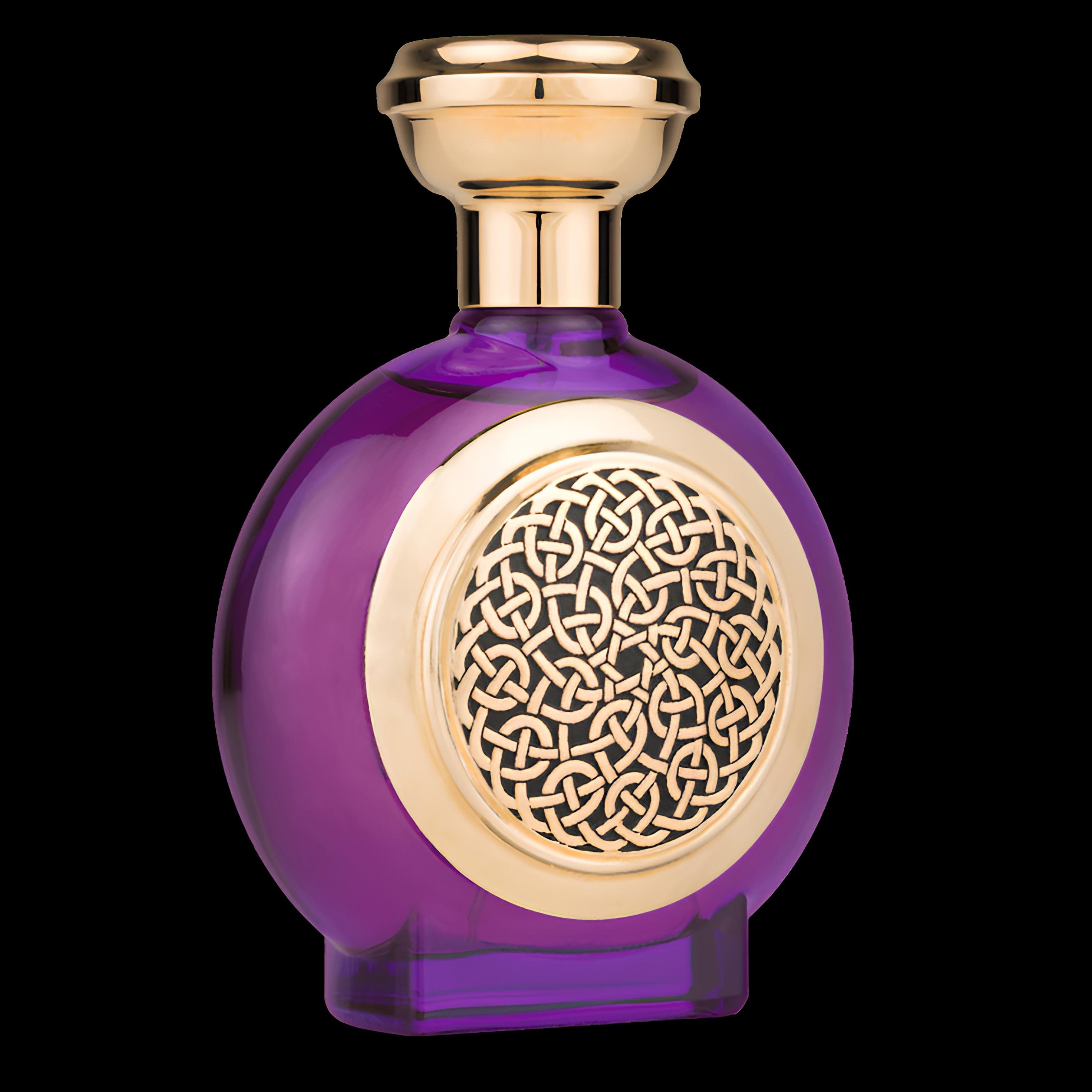 This perfume has a rich amber base, warm leather heart, and sweet vanilla tones, with hints of raspberry and rose, inspired by amethyst hues.