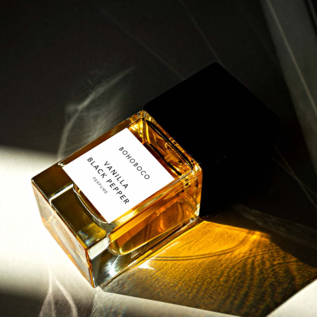 Discover Bohoboco Vanilla Black Pepper Perfume: a sophisticated blend of sweet vanilla and spicy black pepper, symbolizing elegance and intrigue.
