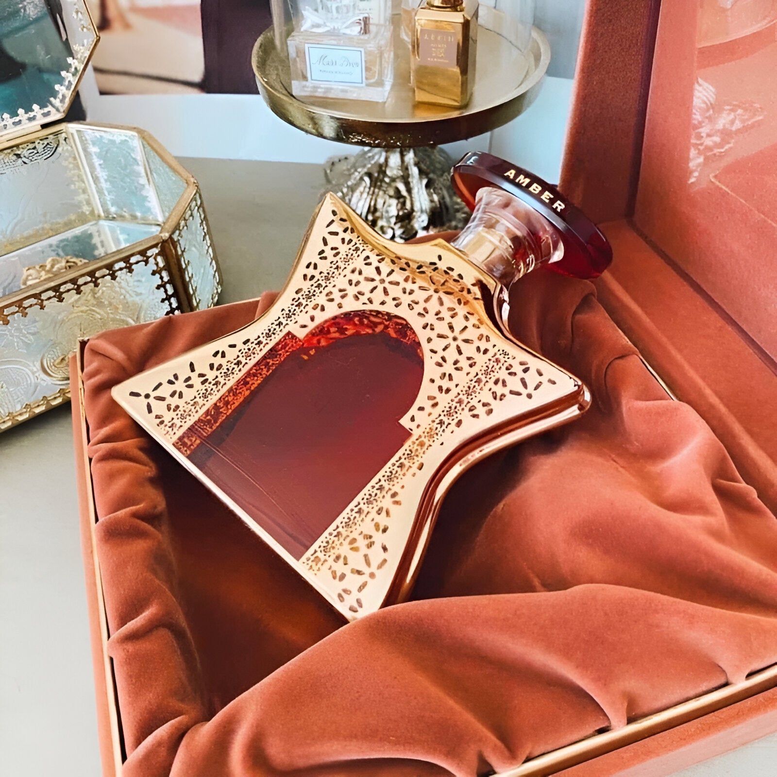Bond No.9 Dubai Amber EDP offers a luxuriously spicy scent with saffron and rose, anchored by warm amber, oud, and musk, capturing the essence of New York's energy fused with Arabian grandeur.