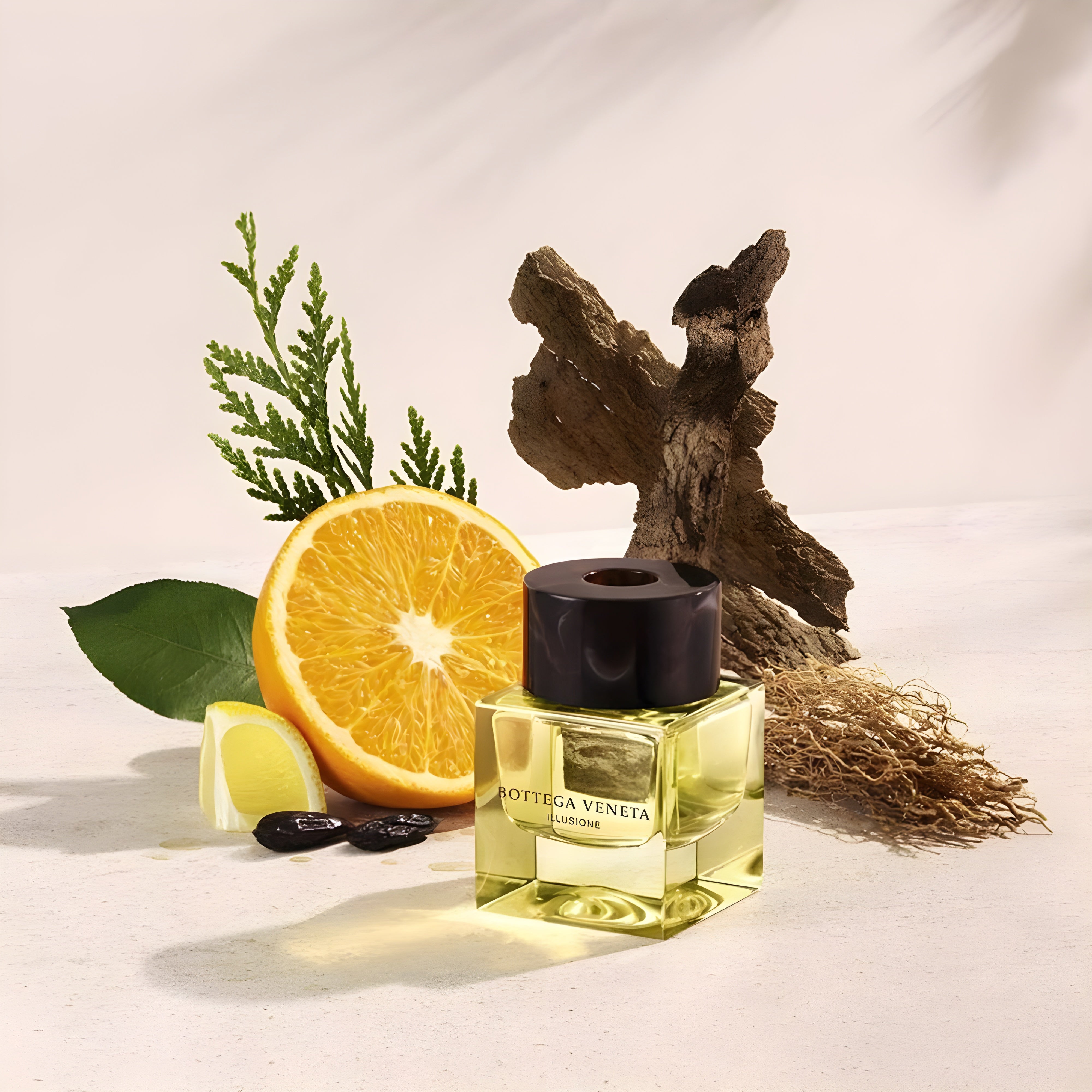 Embrace the luxurious fusion of wood and citrus with Bottega Veneta Illusione EDT, an aromatic journey for the modern man.