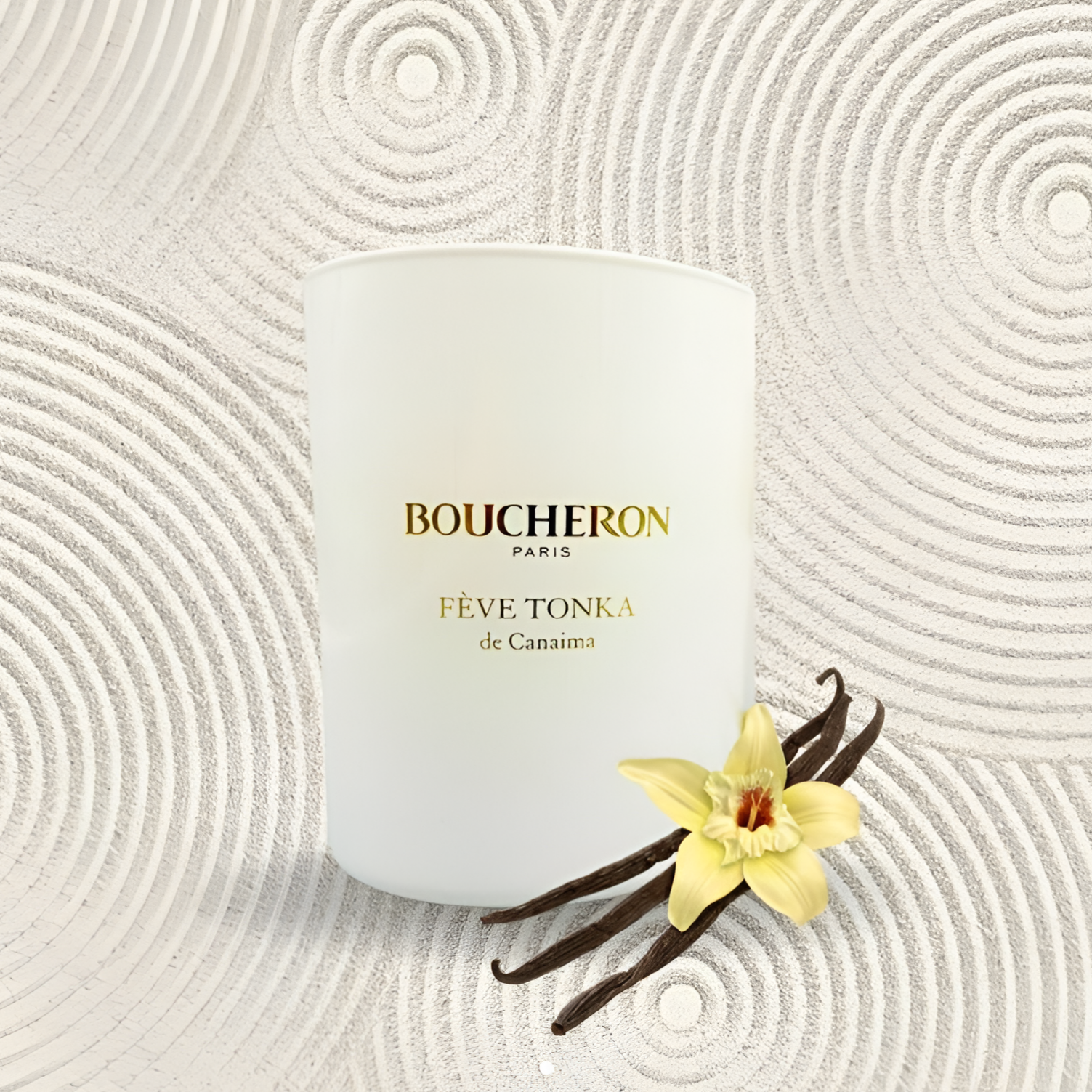 The Boucheron Feve Tonka De Canaima Candle exudes a warm, luxurious scent that conjures images of ancient explorations and vibrant, exotic locales, perfect for infusing any room with the spirit of adventure and elegance.