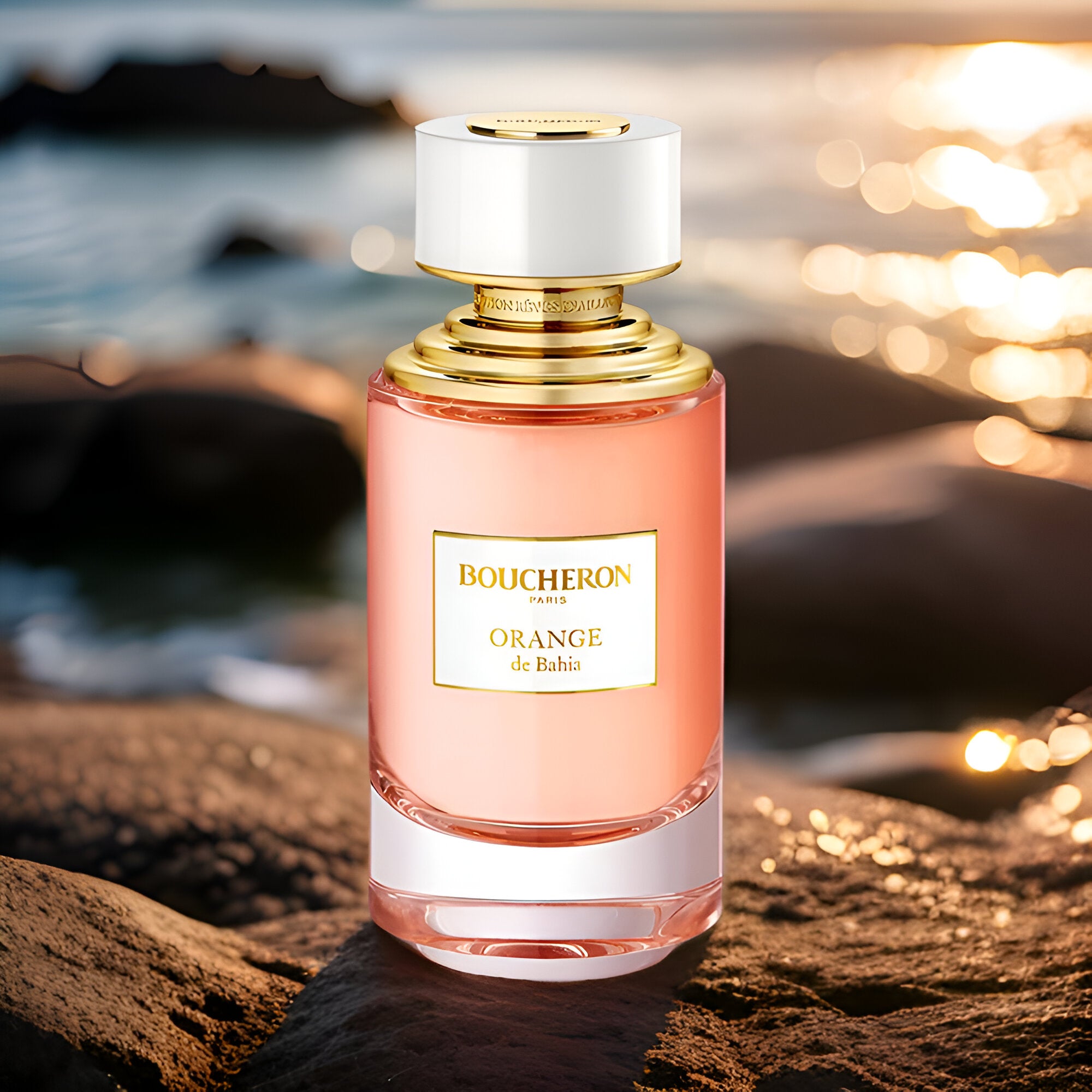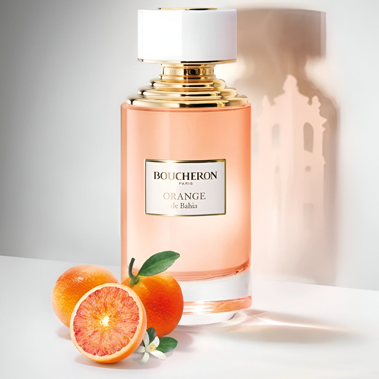 Boucheron Orange De Bahia EDP smells like a bright, sunny day in Brazil, combining zesty mandarin and black currant with floral notes of desert rose and jasmine, all grounded by warm patchouli and sandalwood.