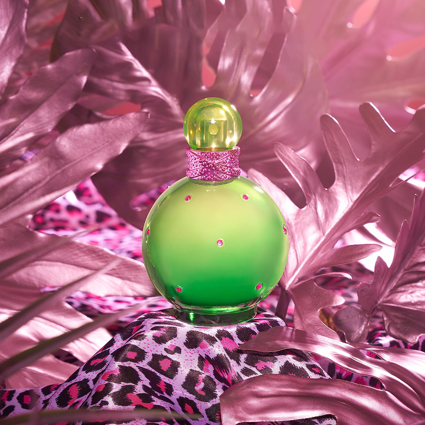 Britney Spears Jungle Fantasy EDT smells like a fun and adventurous blend of tropical fruits, lush flowers, and refreshing green notes, making it feel like a vibrant escape into a wild paradise.