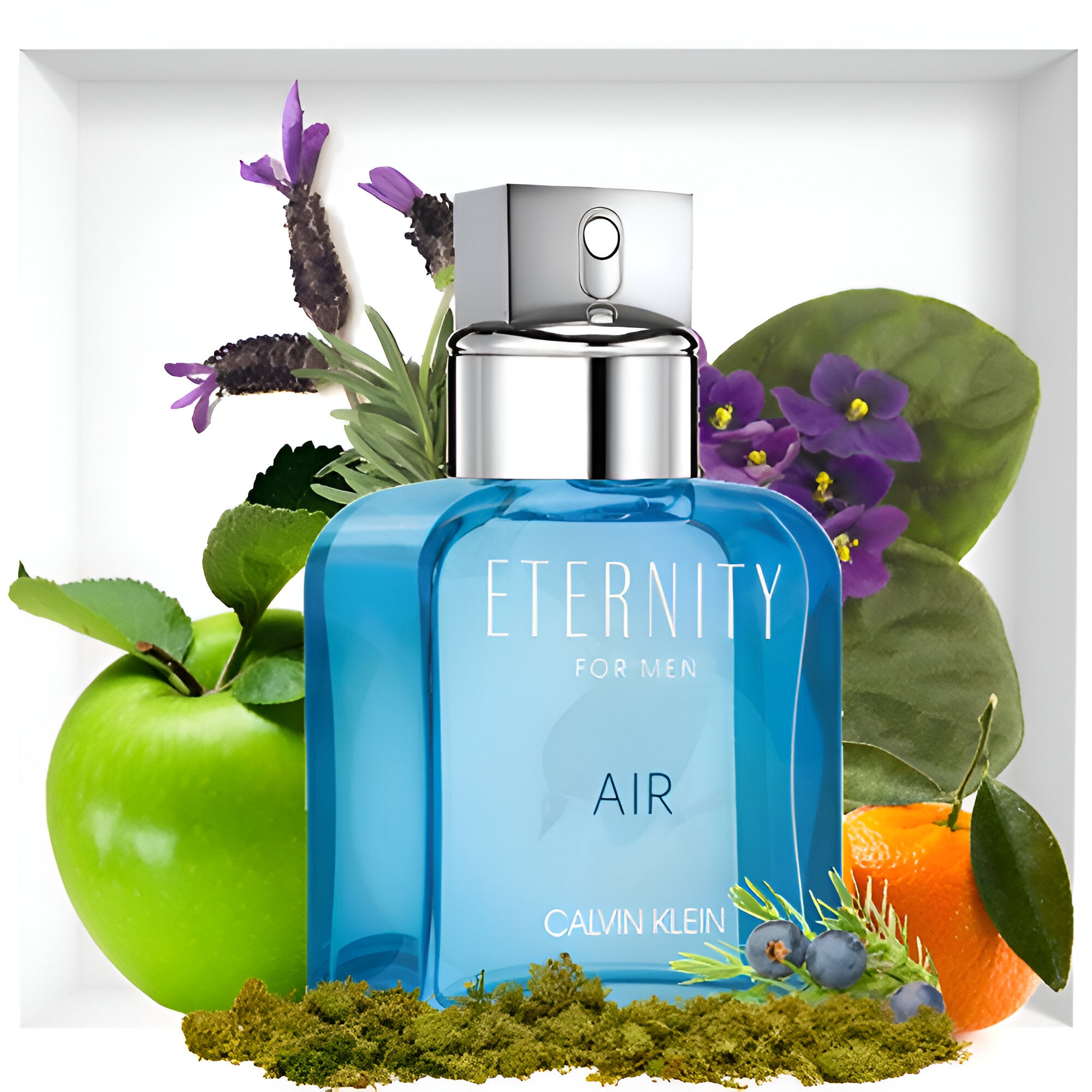 Calvin Klein Eternity Air EDT smells like a fresh and vibrant blend of citrus, berries, and ocean breeze, balanced with hints of lavender, green apple, and earthy undertones.