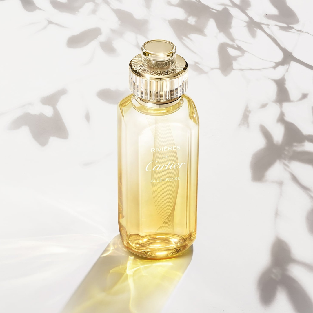 The Cartier Rivieres De Cartier Allegresse EDT has a fresh, citrus scent with notes of orange blossom, reminiscent of the energy of flowing rivers.