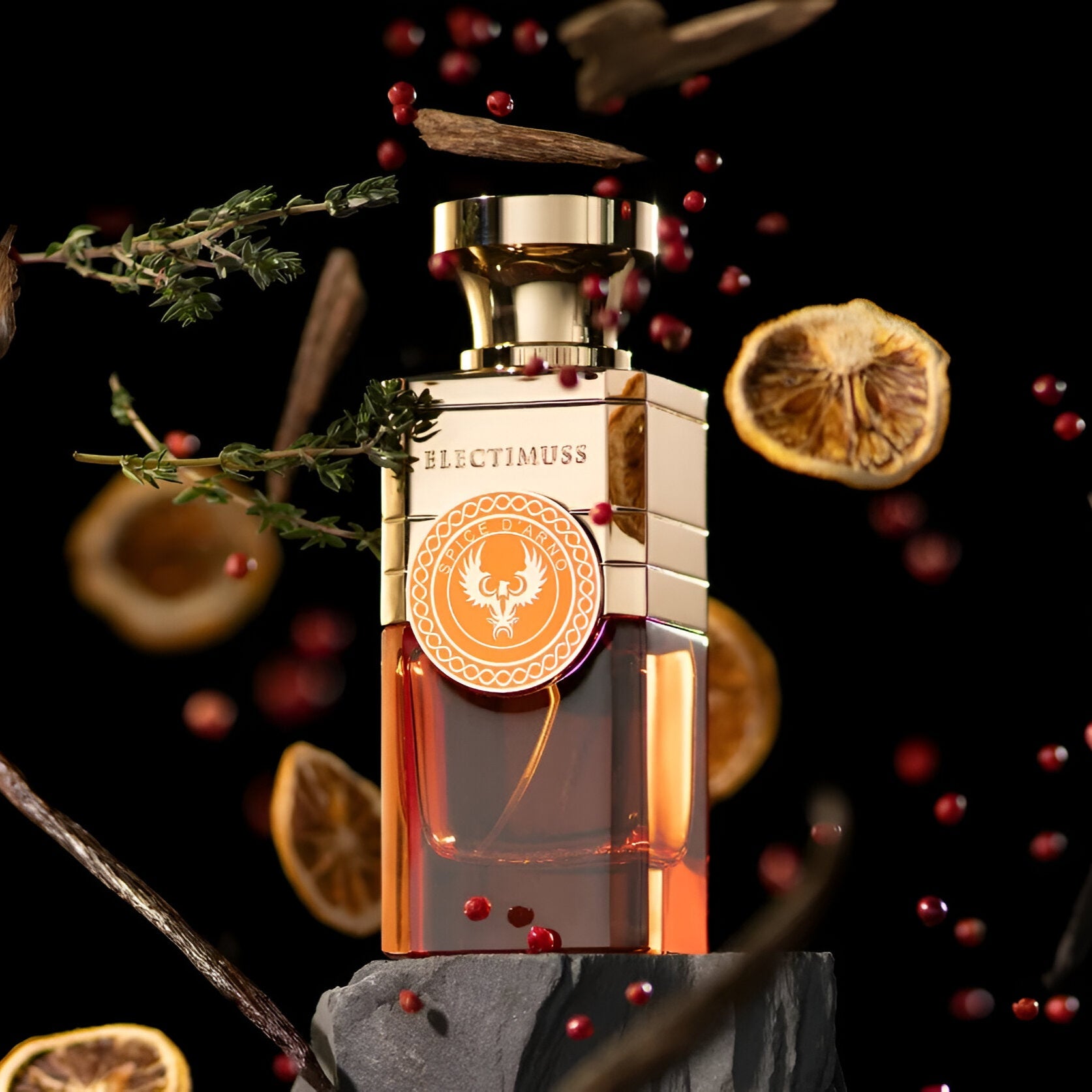 Electimuss Spice D'Arno is a luxurious, exotic parfum with notes of pink pepper, bergamot, and more, crafted for a lasting impression.